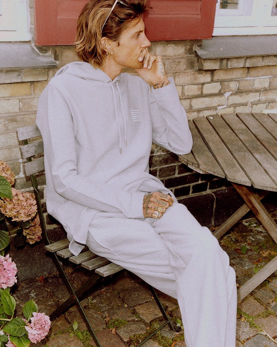 Miesten huppari. Pidemmänmallinen Billebeino huppari on valmistettu kierrätysmateriaalista. Rennossa hupparissa on säädettävä huppu sekä tone to tone Billebeino Brick logo rinnassa.