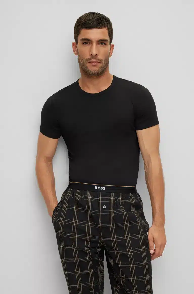 Miesten t-paitapaketti. Tuplapakkaus laadukkaita Boss t-paitoja. Superpehmeiden t-paitojen sivusaumassa Boss logo.
