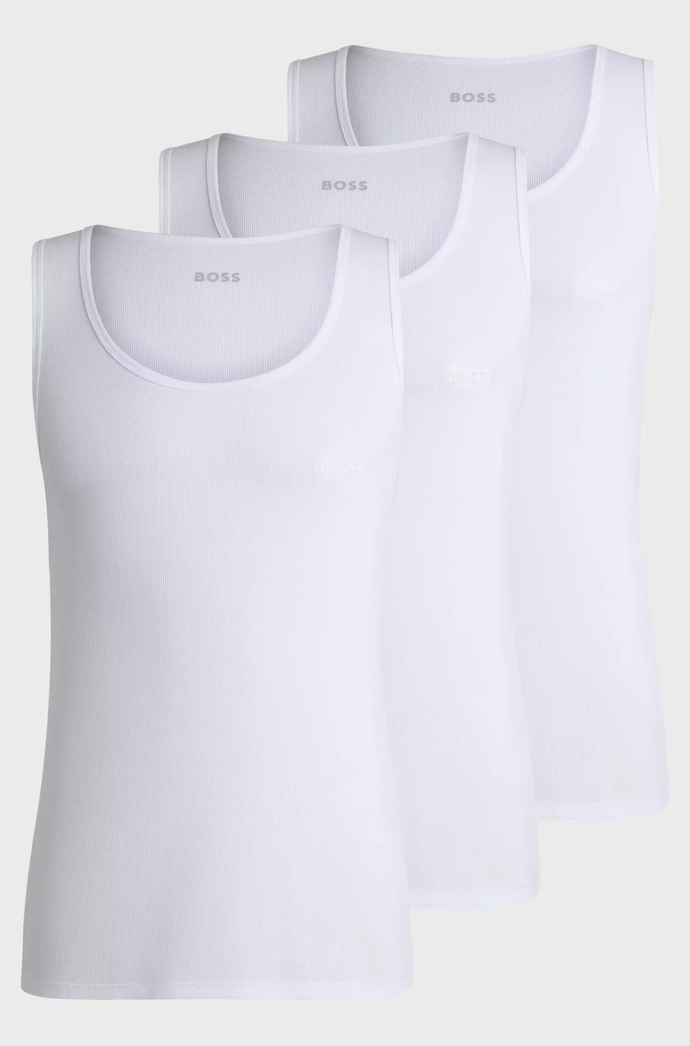 Kolmen pakkaus hihattomia Boss toppeja. Rinnassa brodeerattu BOSS logo.