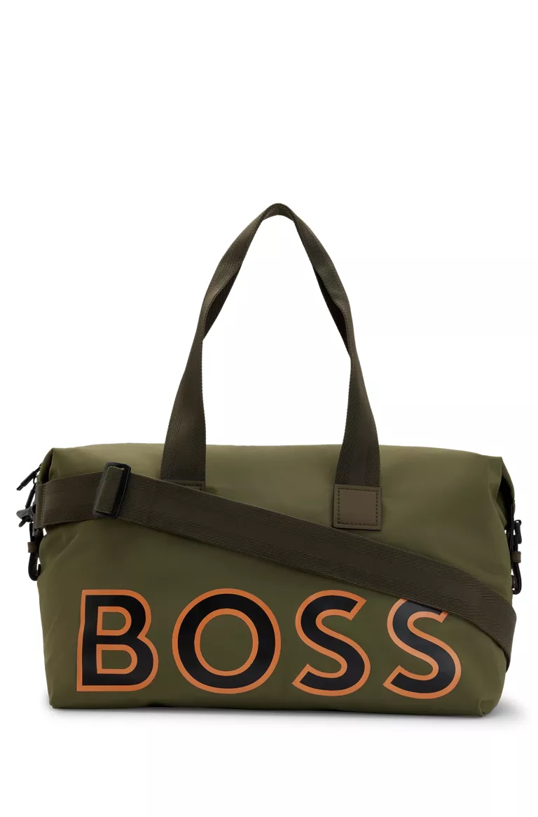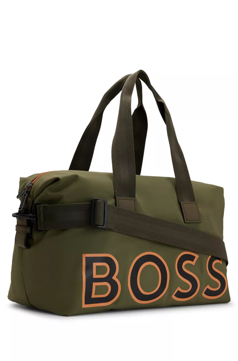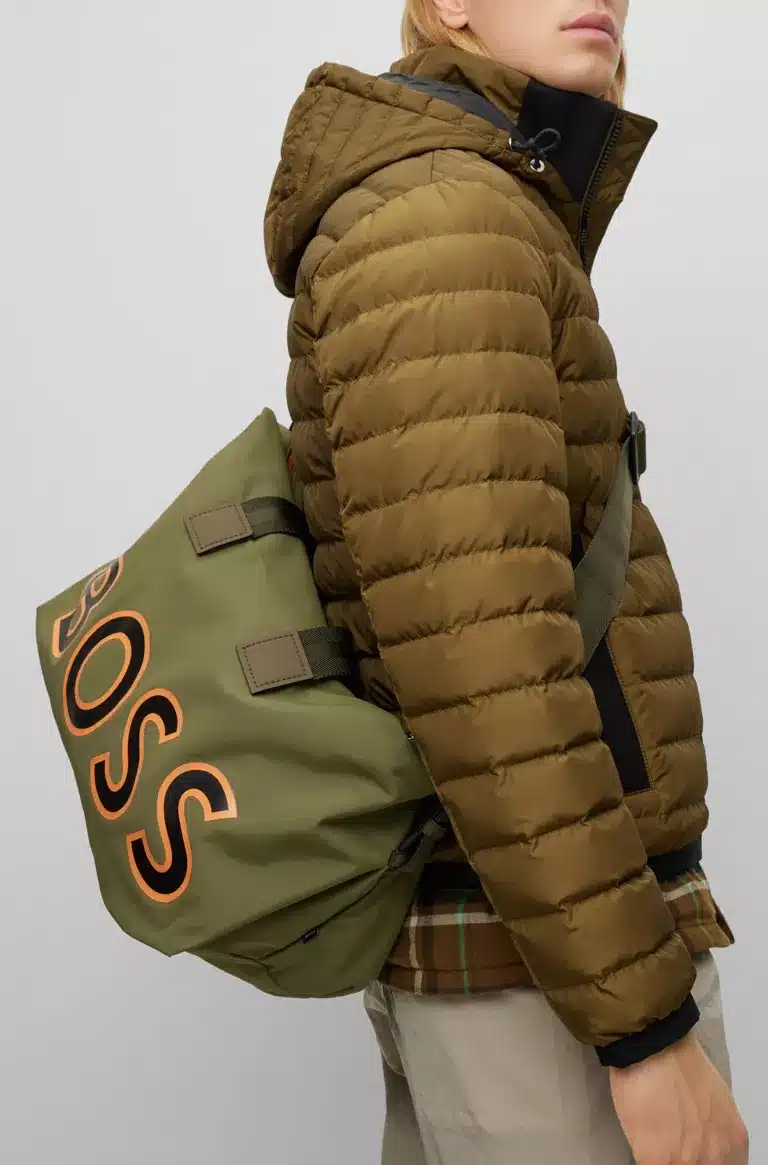 Miesten laukku. Sporttinen Boss weekender-laukku kierrätysmateraalia.