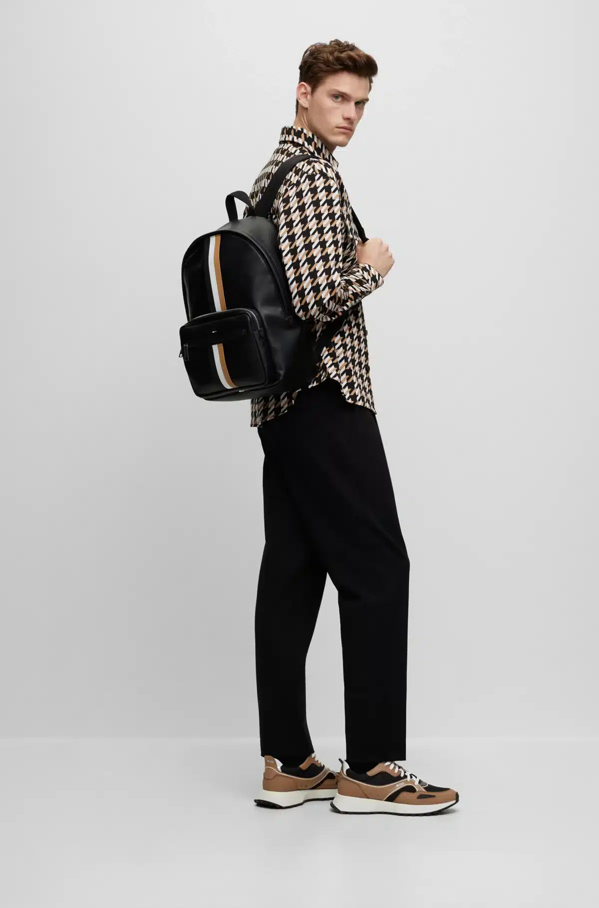 Sporttinen Boss reppu nahkajäljitelmää.