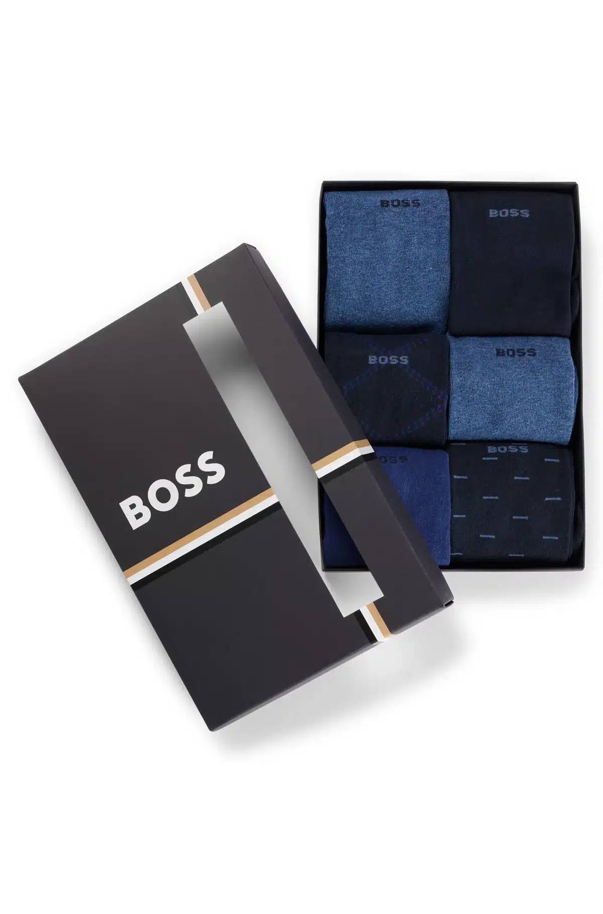 Kuuden pakkaus Boss logosukkia.