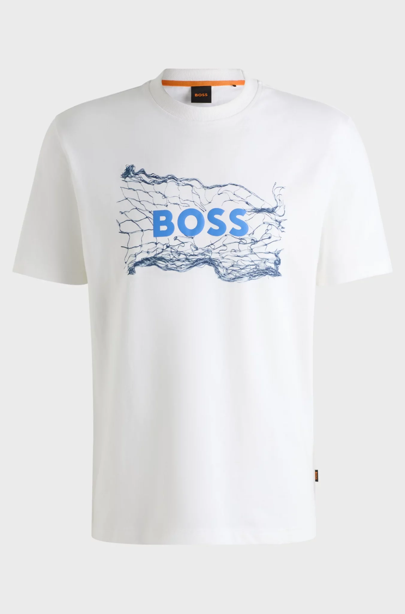 Boss kalaverkko t-paita. Hengittävää puuvillaa.