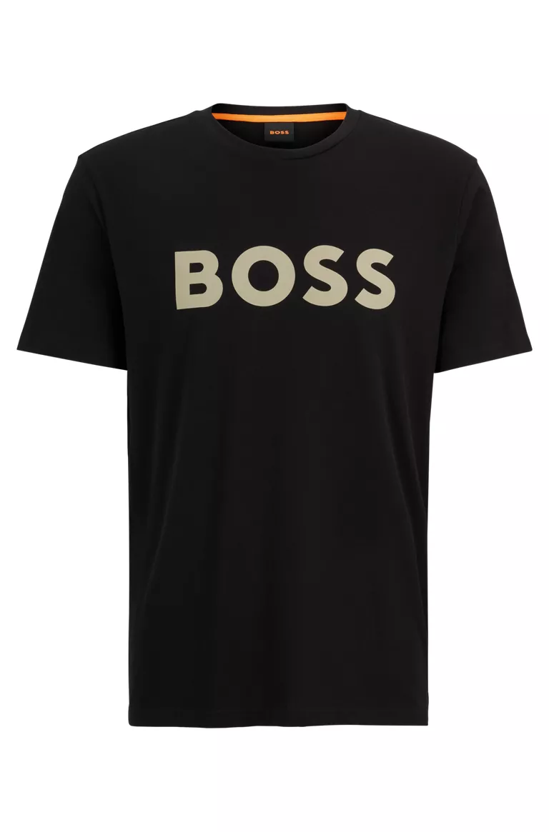 Miesten t-paita. Musta Boss logo t-paita. Pyöreä pääntie.