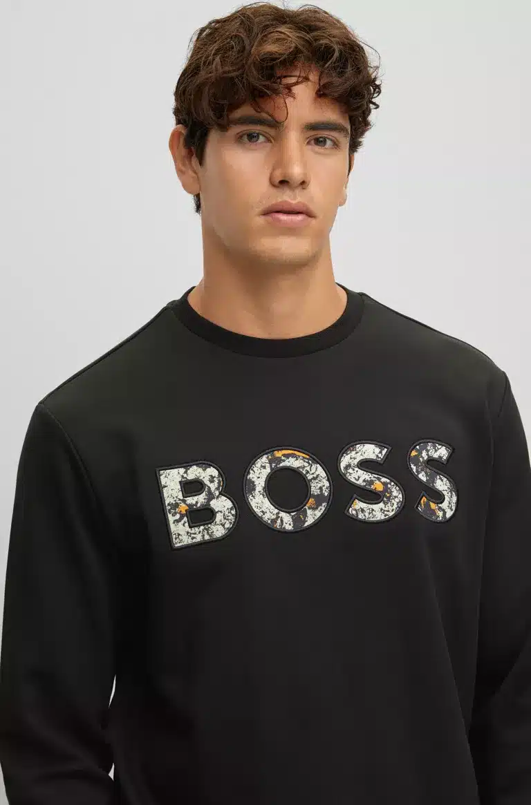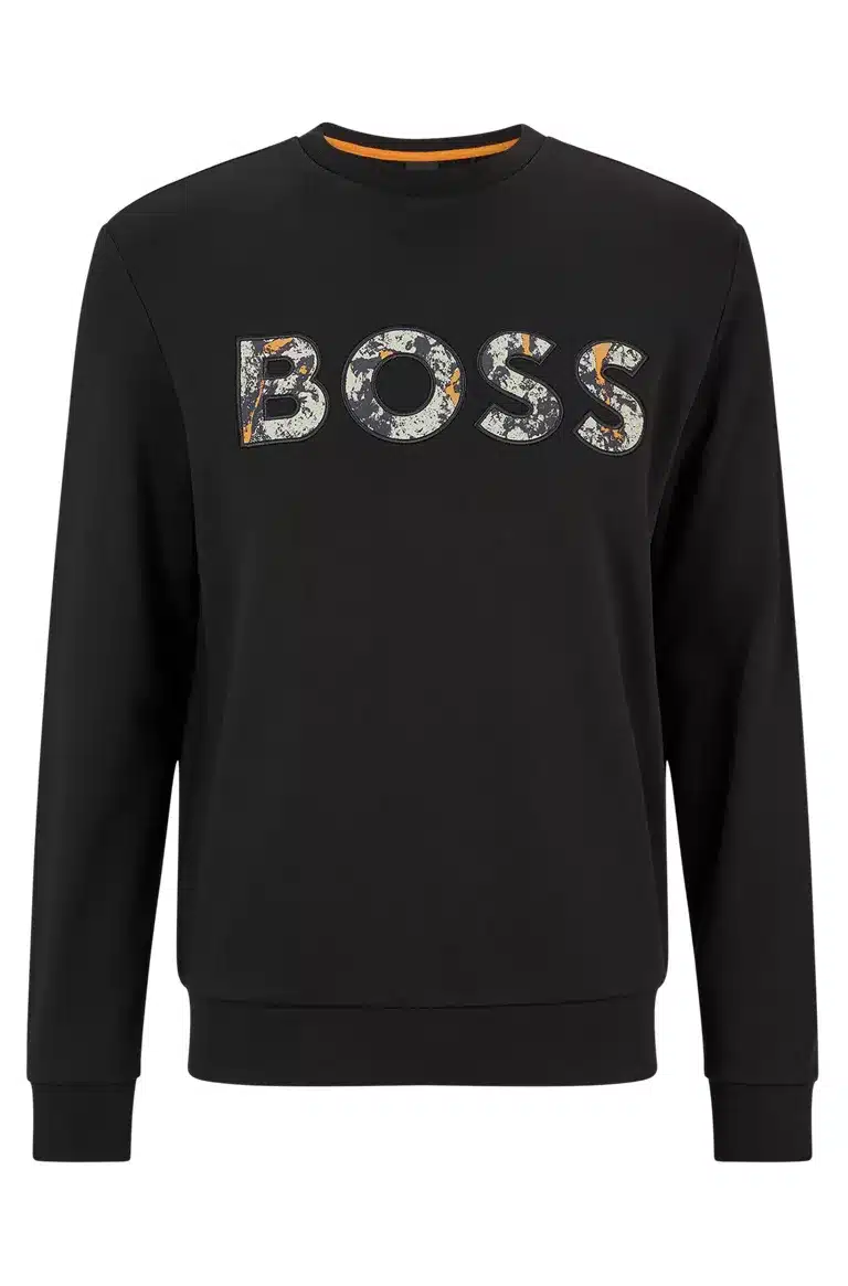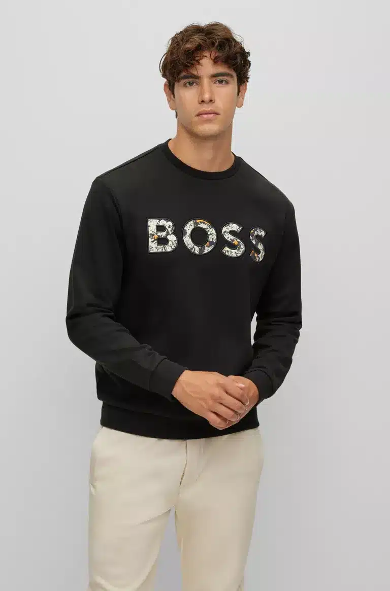 Miesten collegepaita. Musta Boss logoswetari. Pehmeää French Terry puuvillaa.