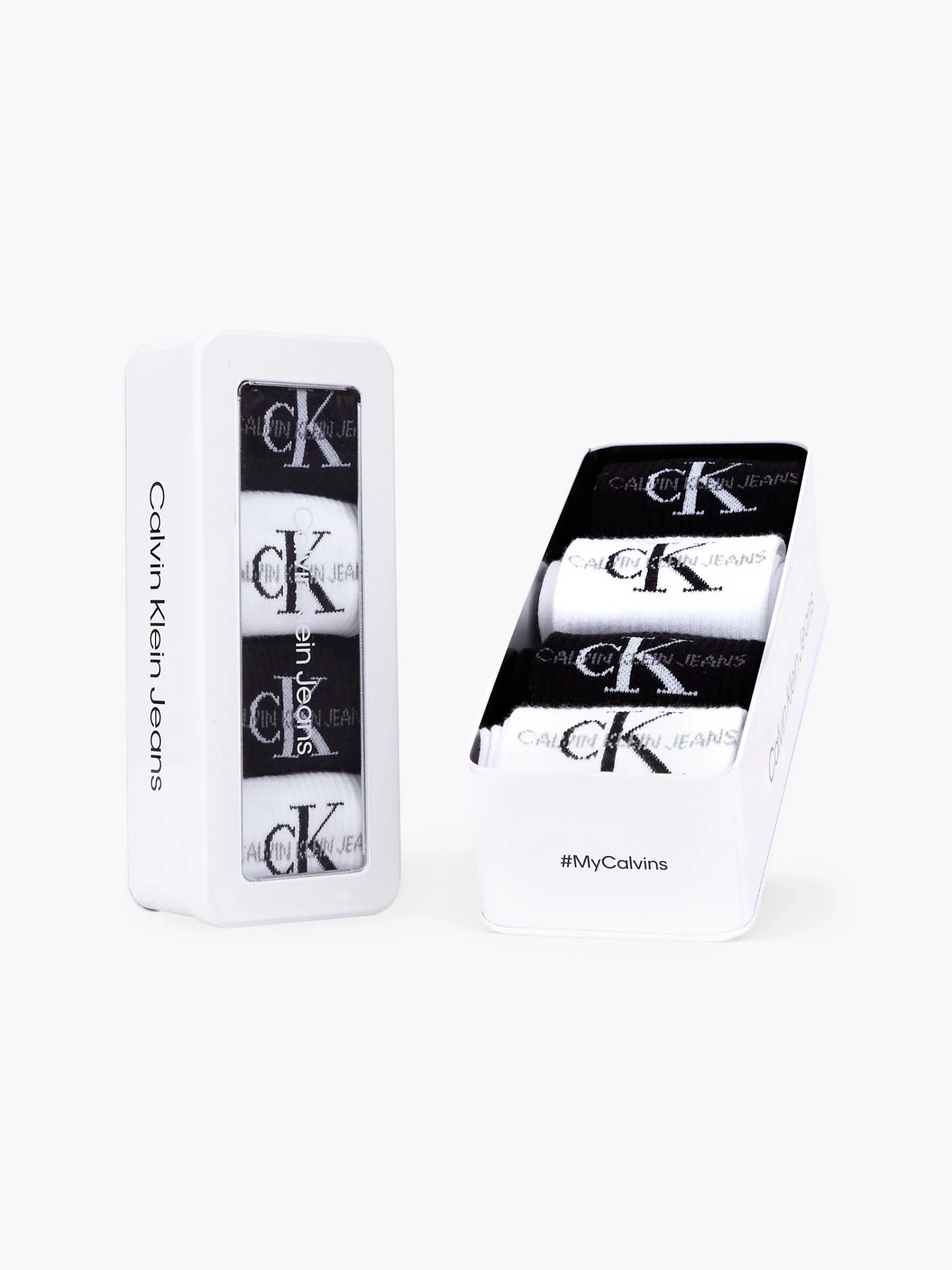 Neljän pakkaus laadukkaita Calvin Klein logosukkia lahjapakkauksessa.
