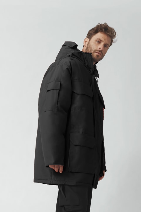 Miesten untuvatakki. Ganada Goosen Expedition Parka on alun perin suunniteltu tieteilijöille jotka toimivat Antarctican McMurdolla ja tarvitsevat lämpöisen takin vaativiin olosuhteisiin. Kankaan Arctic tech – on suunniteltu pitämään lämpöisenä oli olosuhde tai lämpötila mikä tahansa.