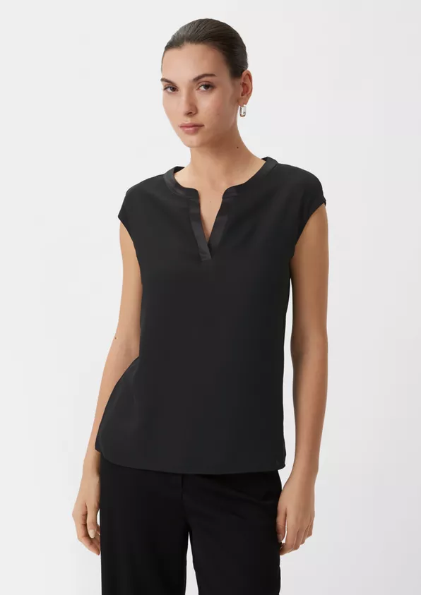 Tyylikäs satiinikauluksinen Comma, t-paita. Kauniisti istuva t-paita on kaksikerroksista viskoosia.