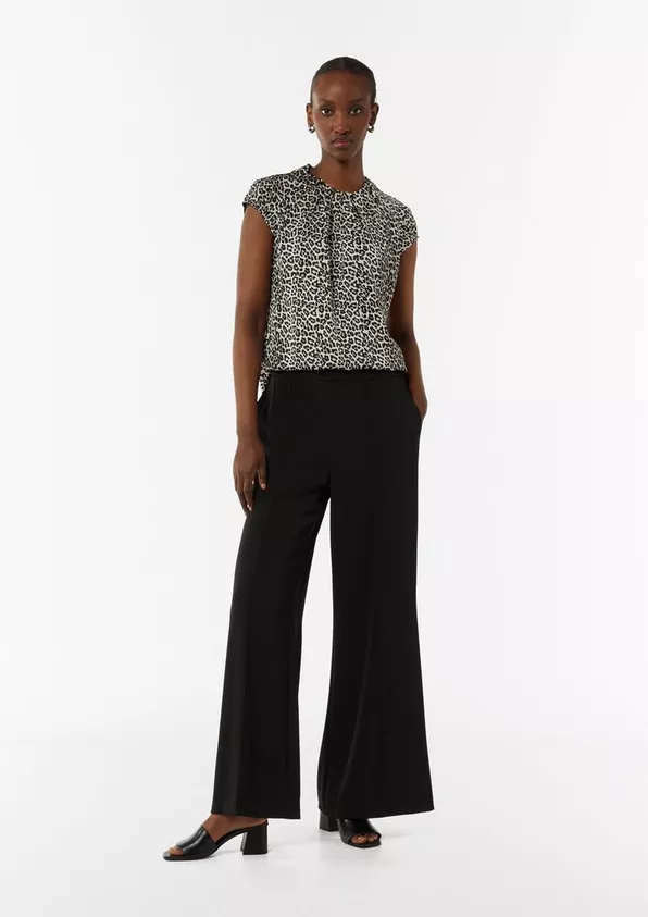 Monikäyttöinen Comma, satiinipusero leopardikuosissa. Pääntiellä kauniit laskokset.