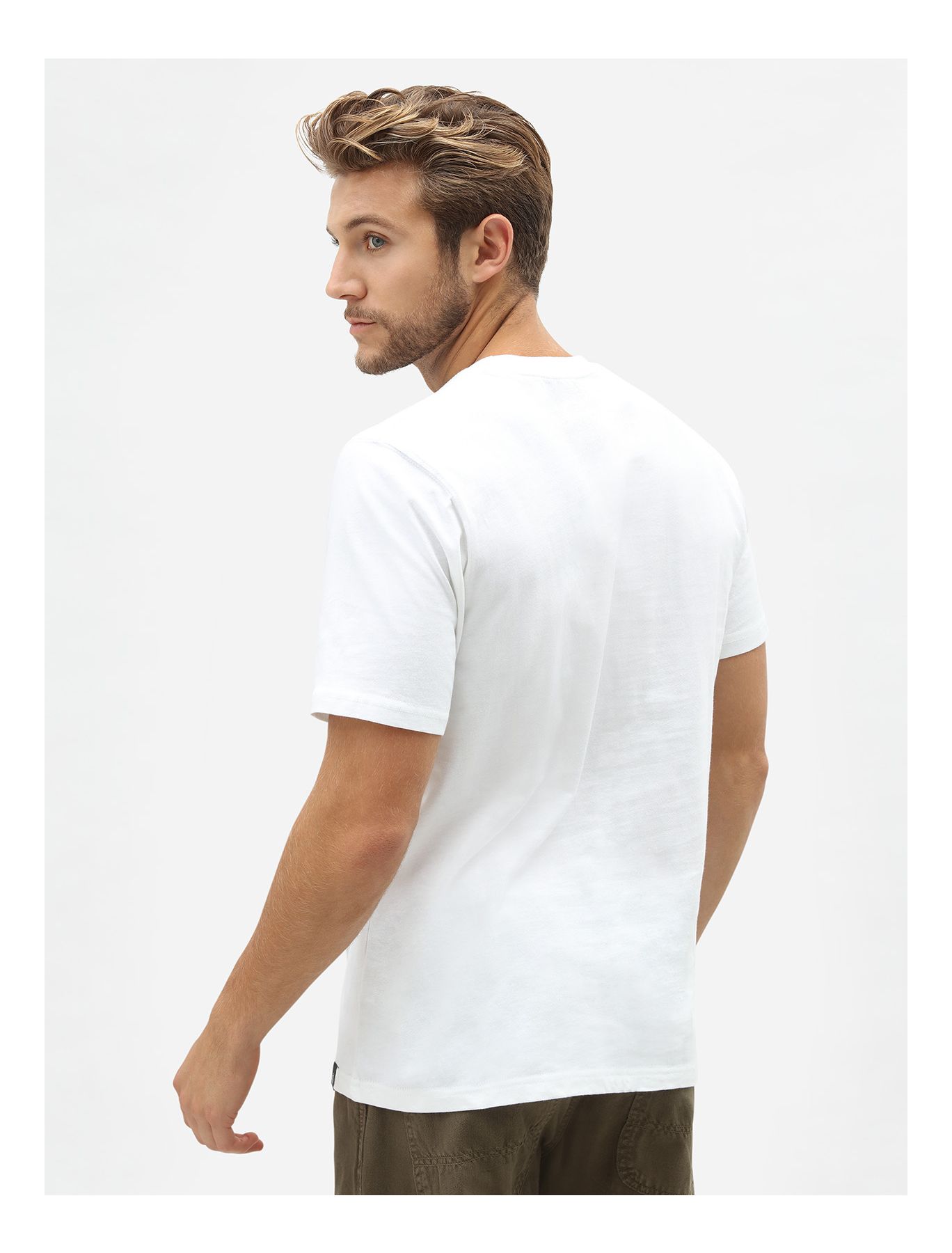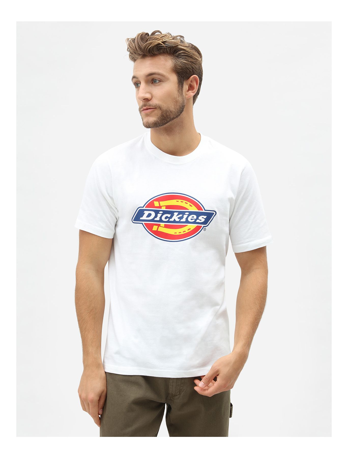 Miesten t-paita. Valkoinen Dickies Hoeseshoe t-paita on klassikko. T-paidan rinnassa on Dickies logo.