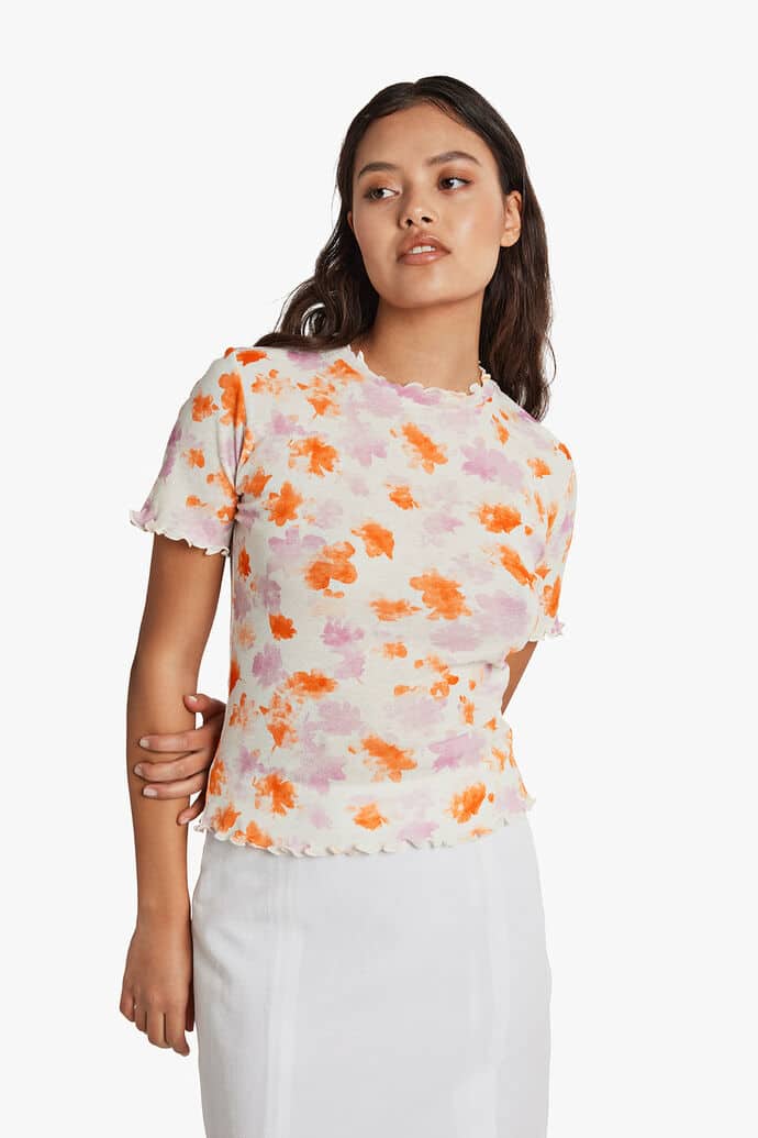 Luomupuuvillainen Envii kuosi t-paita. Aaltomaiset hihansuut, helma sekä pääntie.