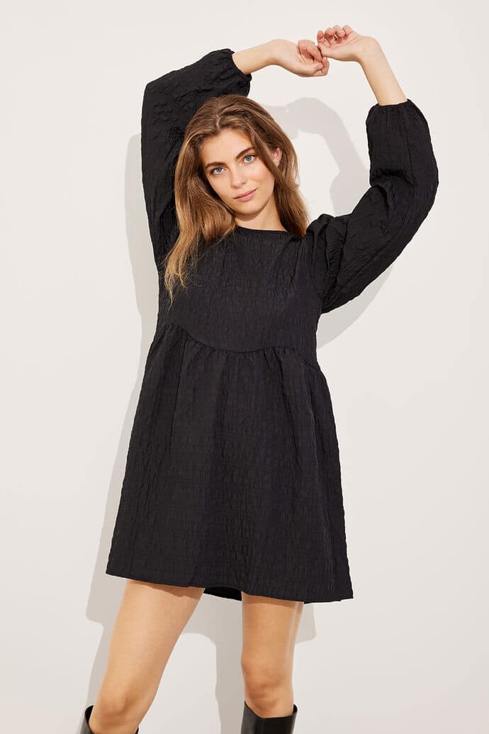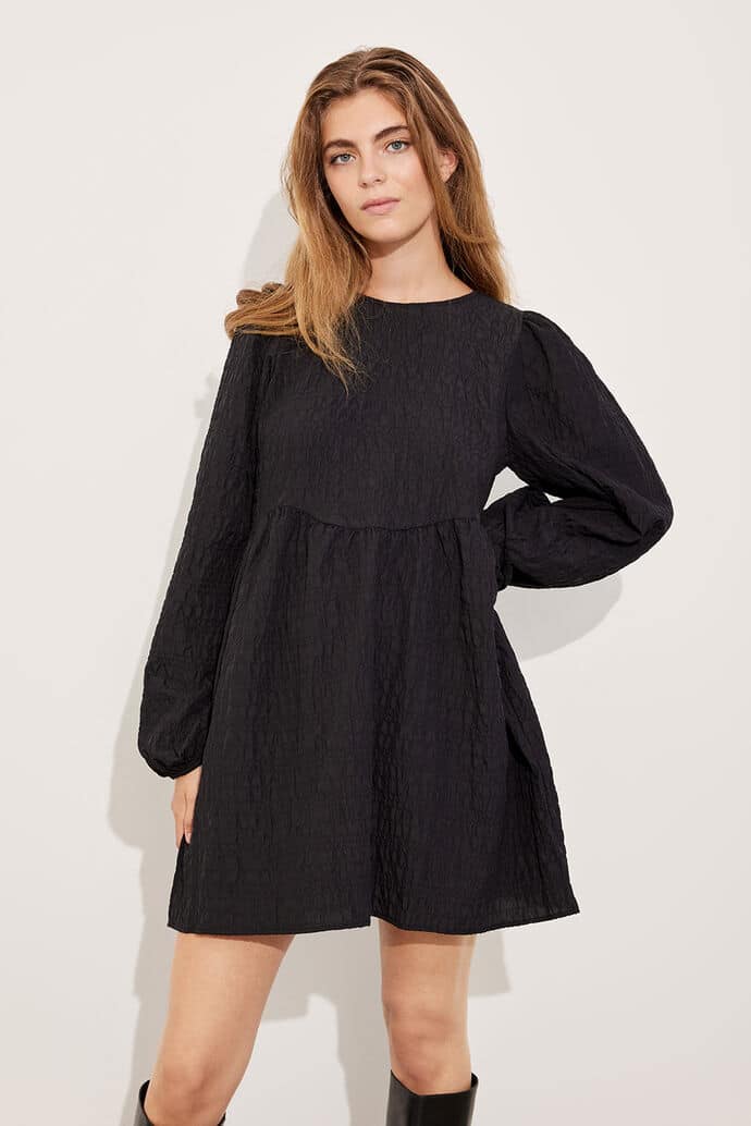 Naisten mekko. Musta, pitkähihainen Envii mekko. Monikäyttöisessä mekossa on oversized fit, runsaat hihat sekä kaunis rusettikiinnitys selkäpuolella.