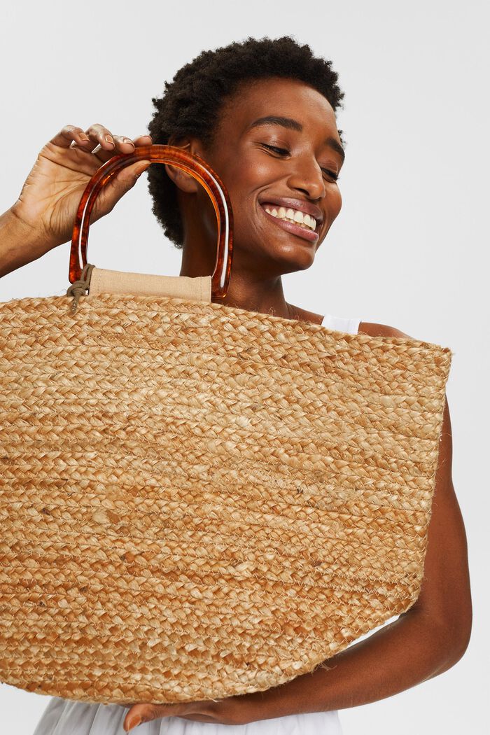 Naisten laukku. Isokokoinen, täydellinen Esprit kesälaukku luonnollista juuttia. Laukussa on jämäkkä kantokahva sekä erillinen pussukka pikkutavaroille.