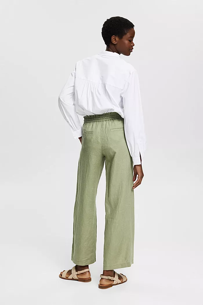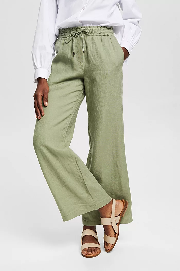 Naisten pellavahousut. Leveälahkeiset Esprit pellavahousut.