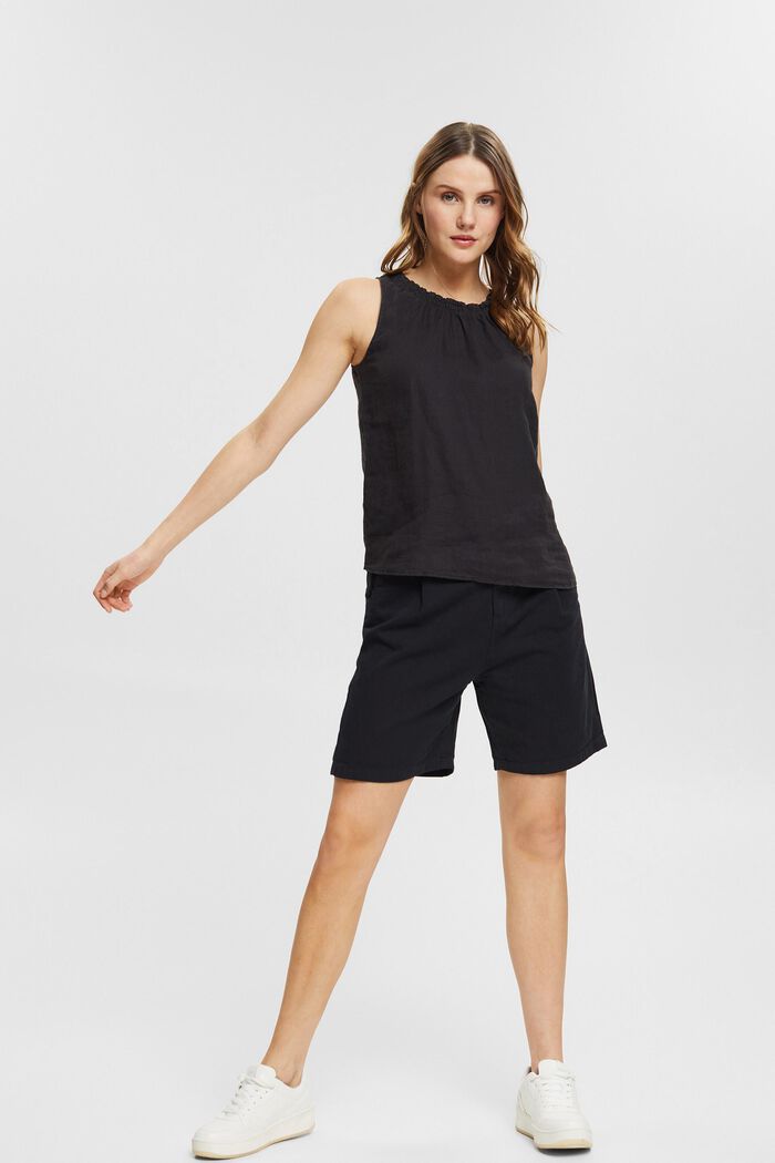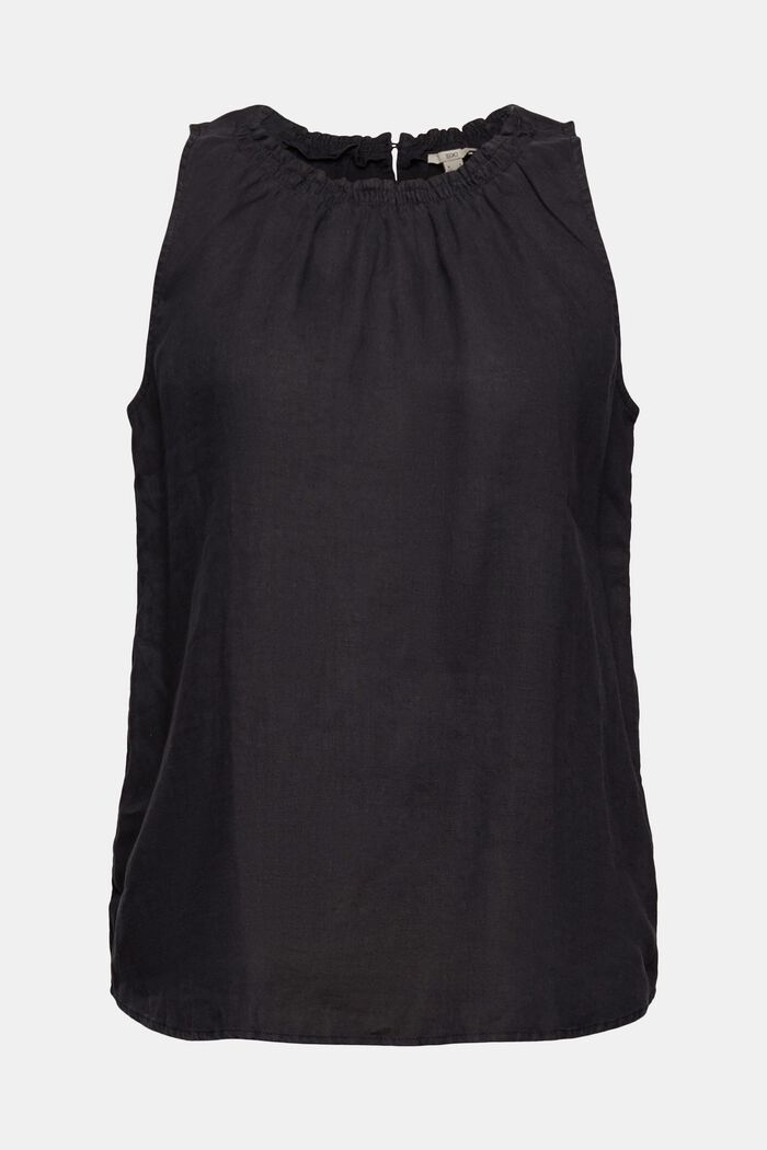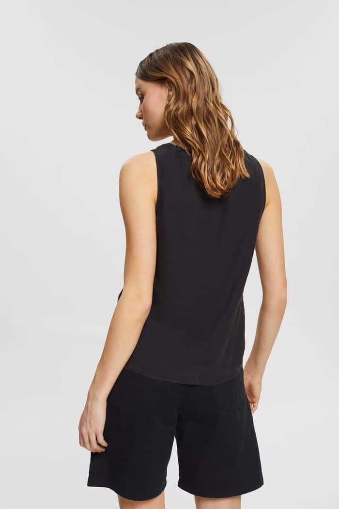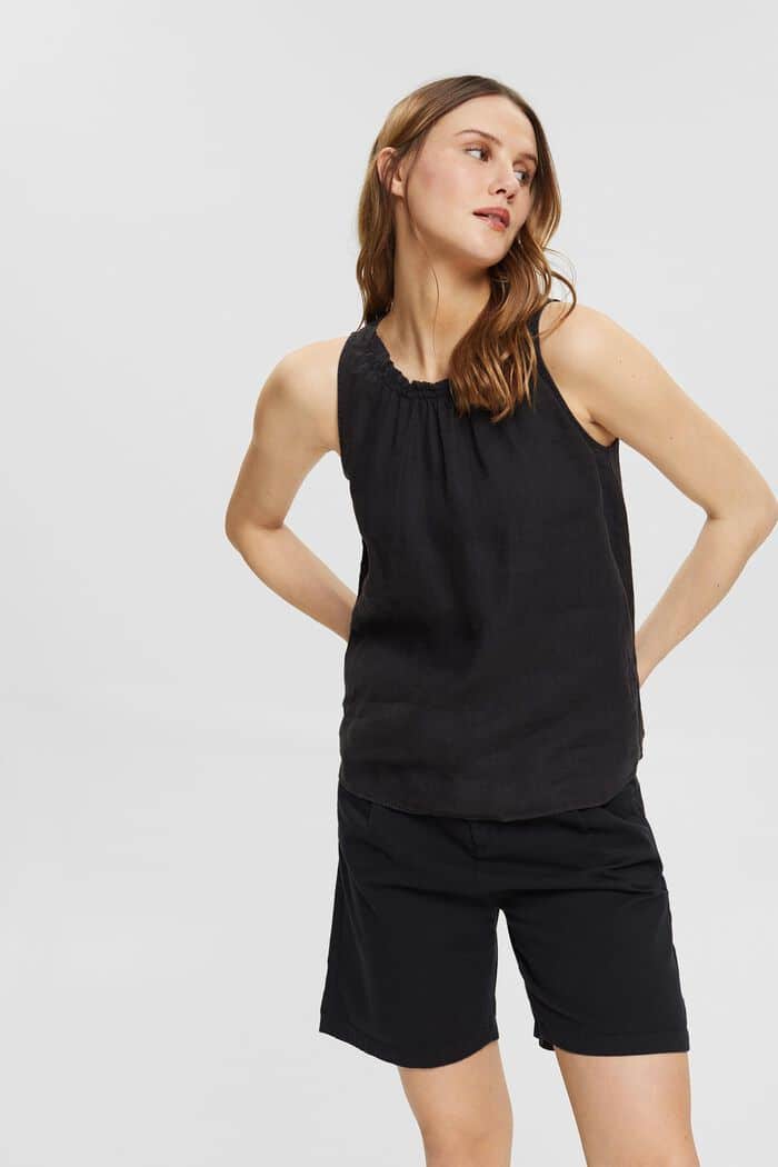 Naisten toppi. Hengittävä Esprit toppi 100% pellavaa. Rennonmallisessa topissa on pyöreä rypytetty pääntie sekä väljä mitoitus.