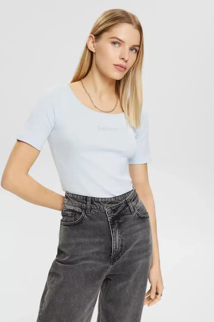 Naisten t-paita. Esprit klassikko t-paita vaaleansinisenä. Rinnassa kimallelogo.