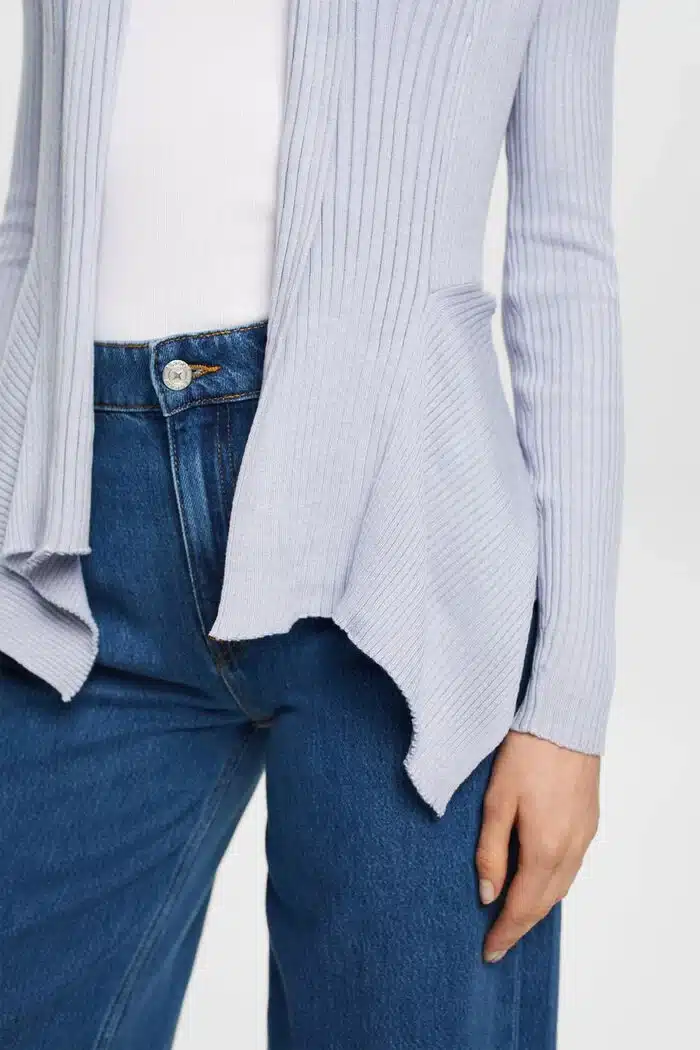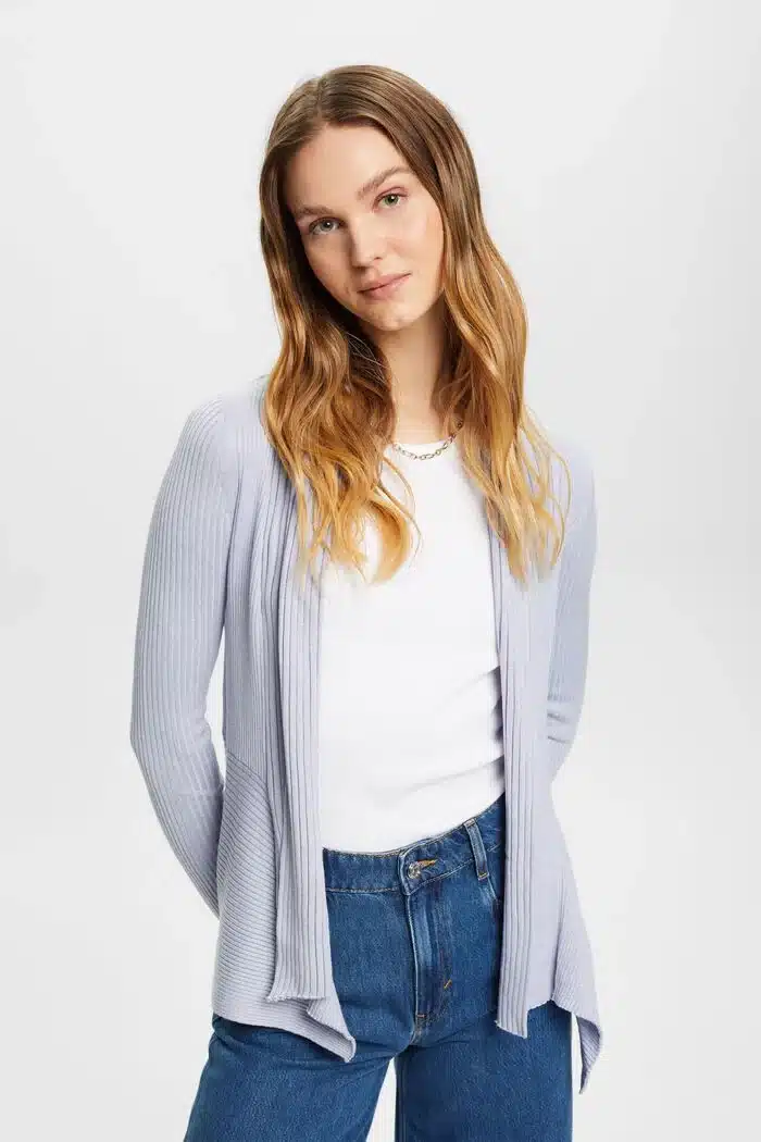 Naisten neuletakki. Tyylikäs Esprit ribbineuletakki. Edestä avoin shaalikaulus jossa liehuva helma.