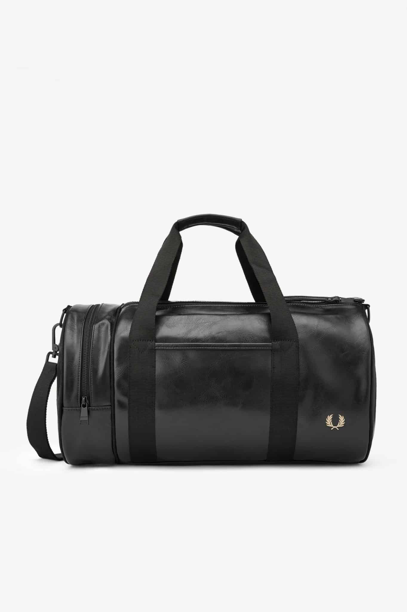 Miesten laukku. Fred Perry Barrel Bag- putkikassi on klassikko! Mustassa laukussa on logoyksityiskohtia, pitkä olkahihna, kantohihnat sekä vetoketjutasku sivussa. Laukku sulkeutuu päältä vetoketjulla.