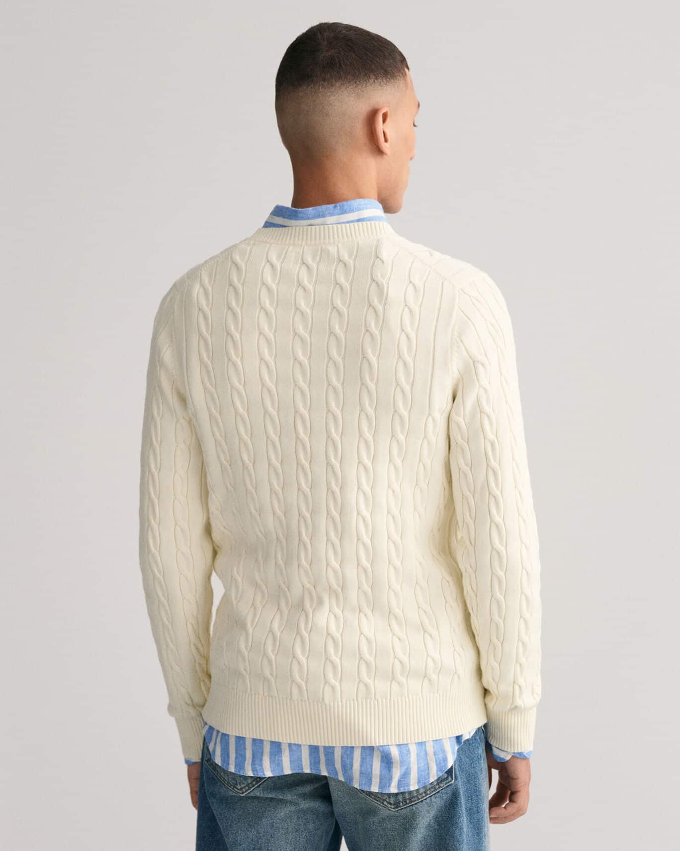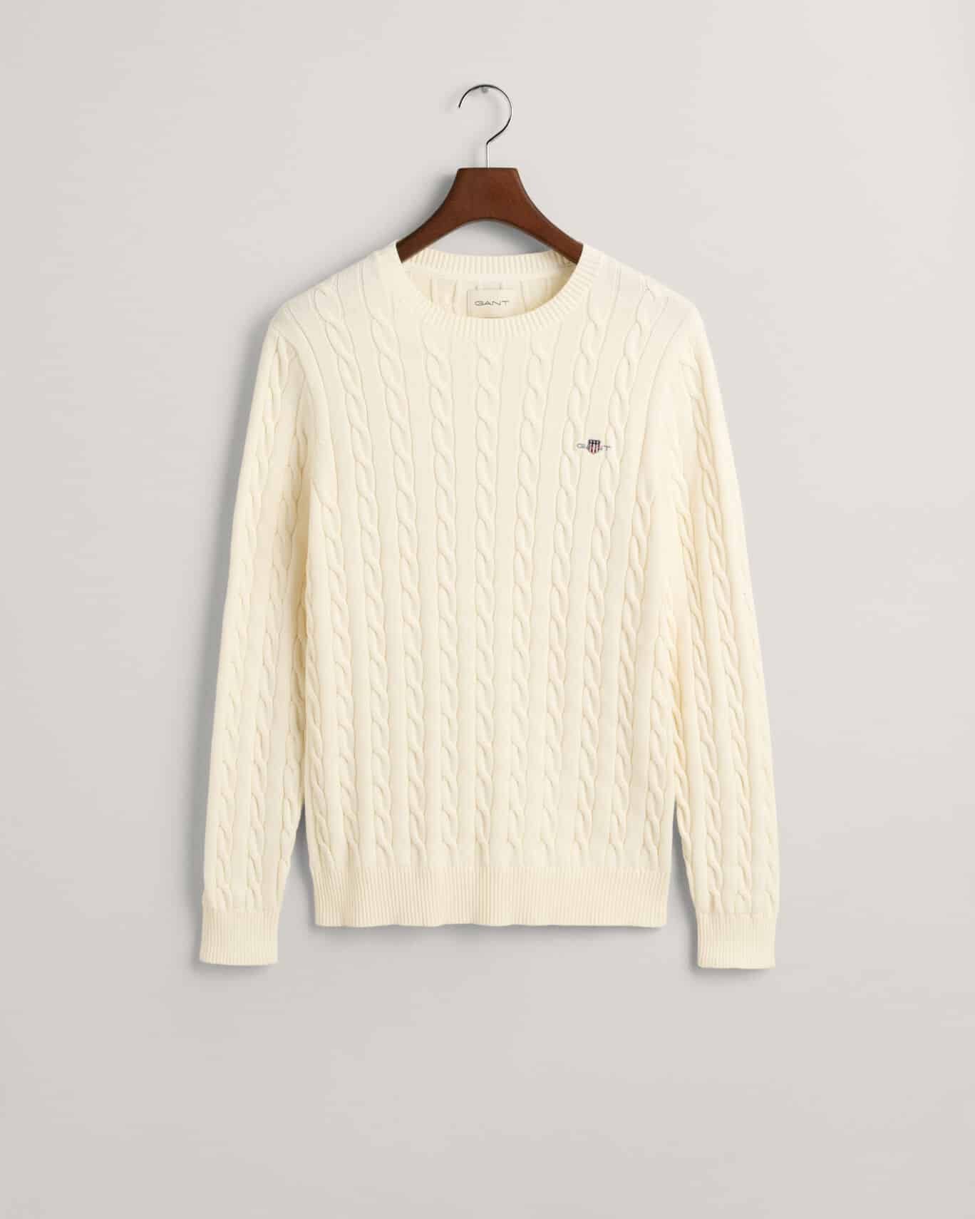 Pehmeästä puuvillasta valmistetussa palmikkoneulepuserossa on kirjailtu GANT-logo rinnassa. Pyöreä pääntie.