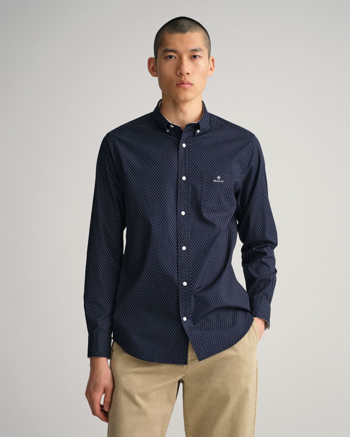 Miesten paita. Laadukas Gant puuvillapaita. Paidassa on normaali mitoitus, pieni pilkkukuosi sekä rintatasku jossa brodeerattu Gant logo.