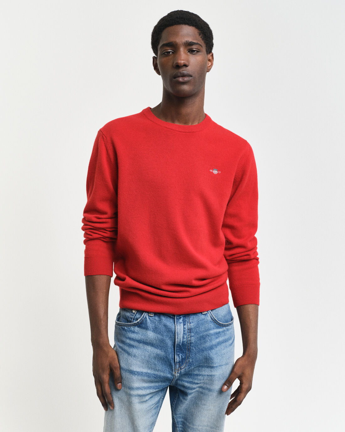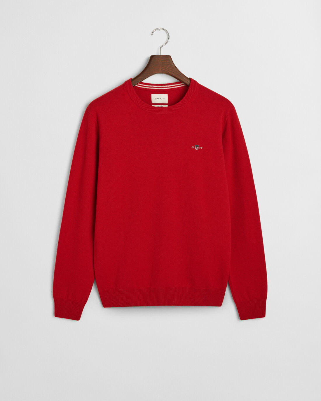 Erittäin hienosta lampaanvillasta valmistettu Gant neulepusero. Ajattomassa neuleessa on pyöreä pääntie sekä brodeerattu Gant logo rinnassa.