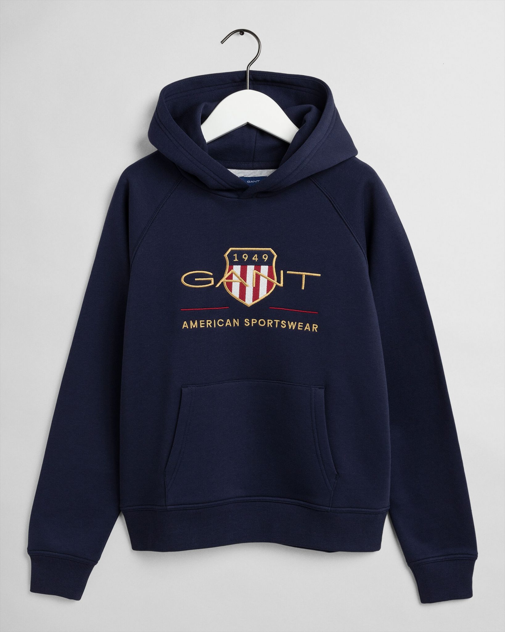 Junior huppari. Gant Teens- malliston ikoninen Archive Shield -huppari. Unisex hupparissa on kengurutasku, sekä brodeerattu Gant Archive Shield logo rinnassa.