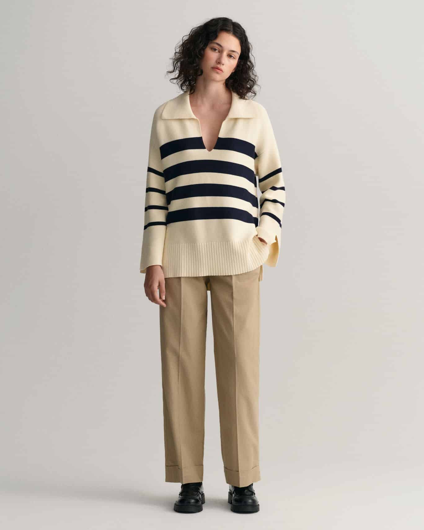 Naisten neule. Moderni Gant Woman Breton -raitaneule.