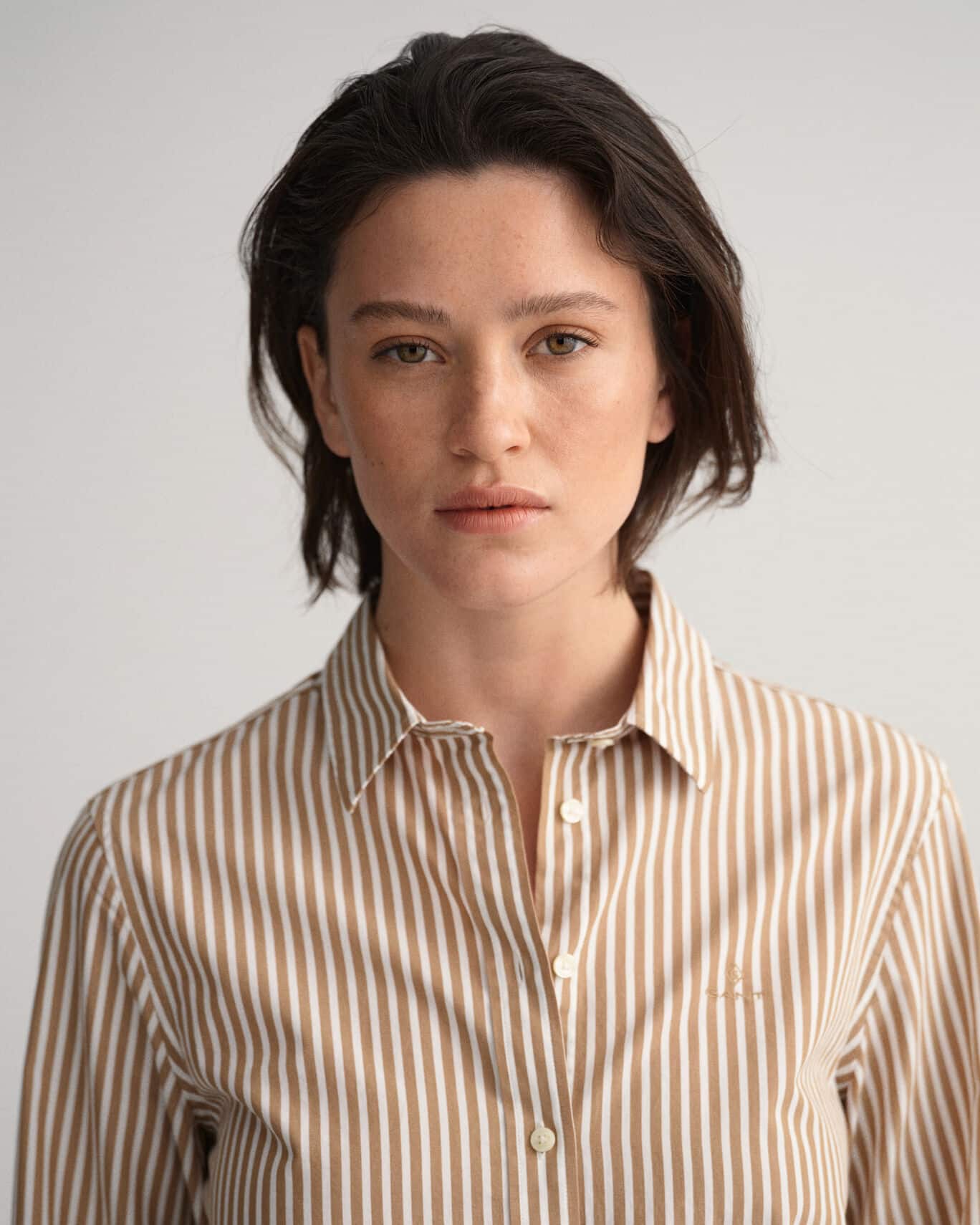 Gant Woman Broadcloth Striped Shirt Warm Khaki