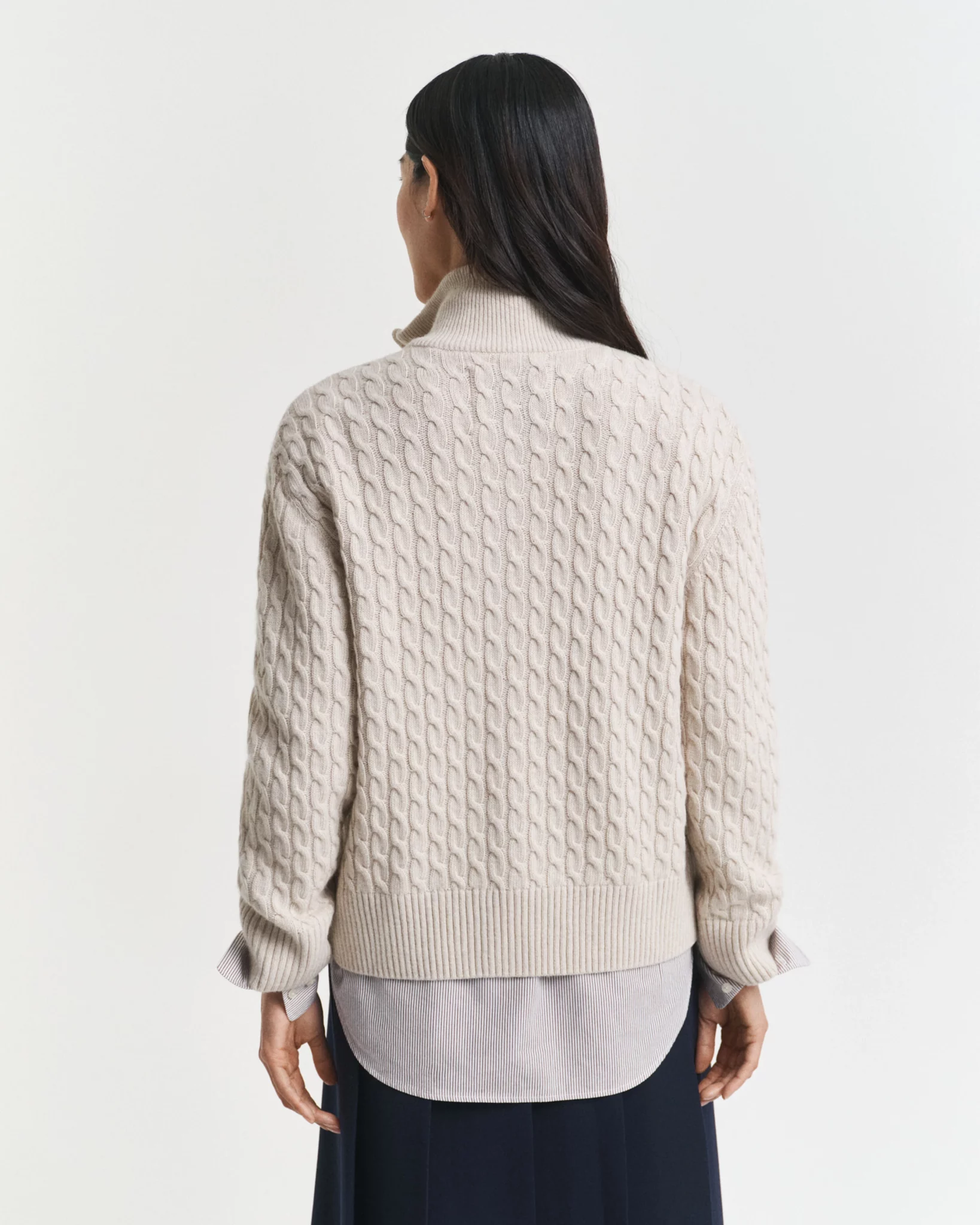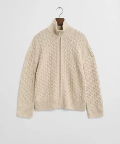 Laadukkaasta italialaisen villan, viskoosin ja kašmirin sekoitteesta valmistetussa neulepuserossa on väljä mitoitus, ja se on kauttaaltaan palmikkoneuletta. Mallissa on kaksinkertainen joustinneulottu vetoketjukaulus, kaksisuuntainen vetoketju sekä tyylikkäät joustinneulereunat hihansuissa, pääntiessä ja helmassa.