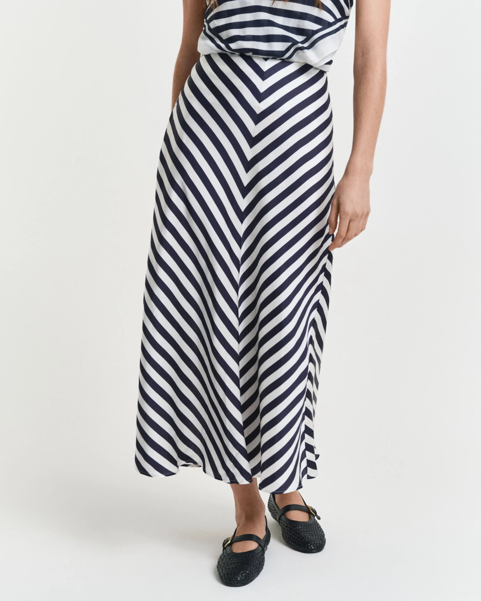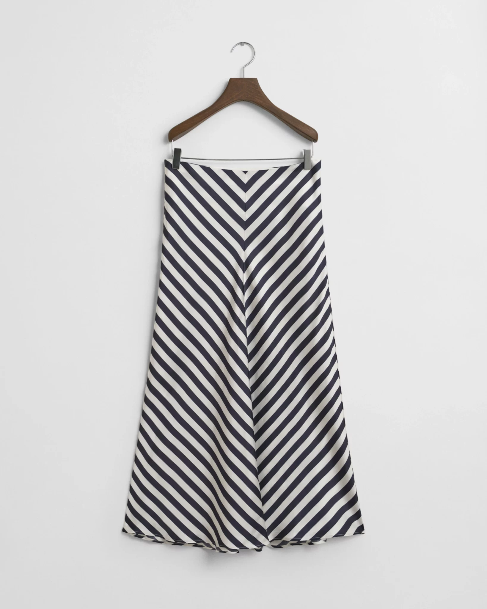 Midimittaisessa hameessa on mairitteleva vino leikkaus ja siksak-raitakuosi. Lisäksi mallissa on regular fit ‑mitoitus sekä piilovetoketju keskellä takana.