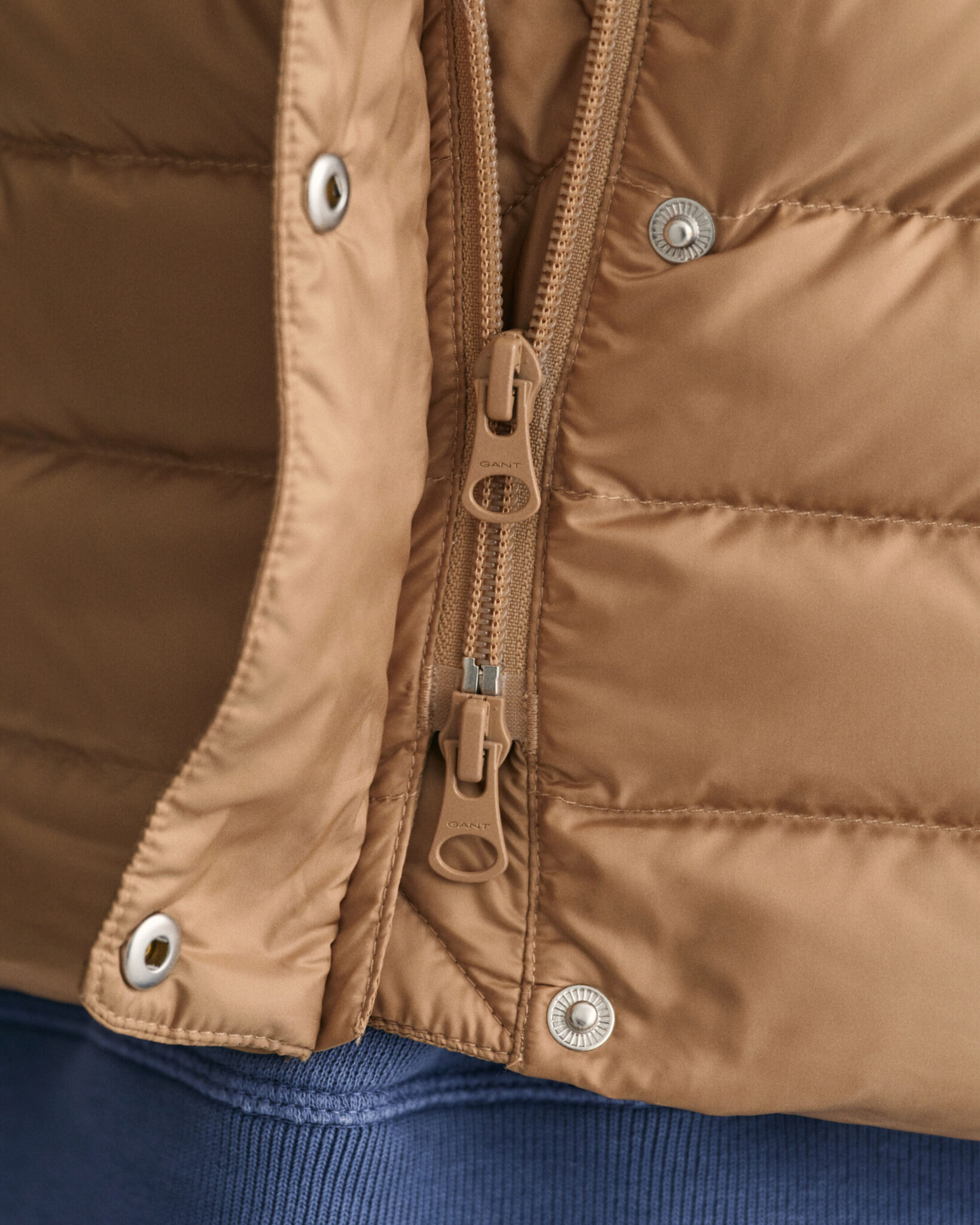 Laadukas Gant Woman kevytuntsikka on loistava takki lähes ympärivuotiseen käyttöön. Kerrospukeutumiseen suunniteltu kevyt untuvatakki on erityisen käytännöllinen vaate, kun ilmat viilenevät. Keveytensä ansiosta se on ihanteellinen matkavaate ja soveltuu täydellisesti kerrospukeutumiseen. Viileällä säällä voit käyttää sitä sellaisenaan, ja vuoden kylmimpien kuukausien aikana, jolloin lämpötila laskee alle kymmenen pakkasasteen, se lämmittää mukavasti villakangastakin alla.