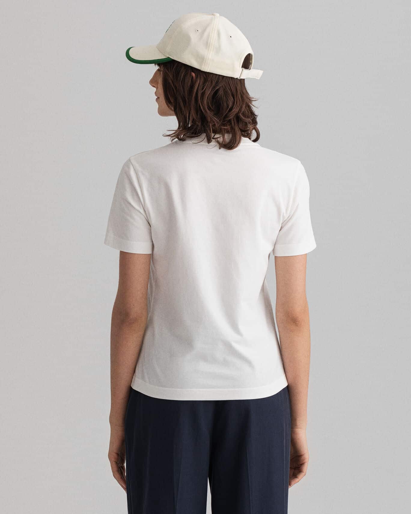 Naisten t-paita. Valkoinen Gant Woman logo t-paita. Rinnassa tone to tone-logoprintti.