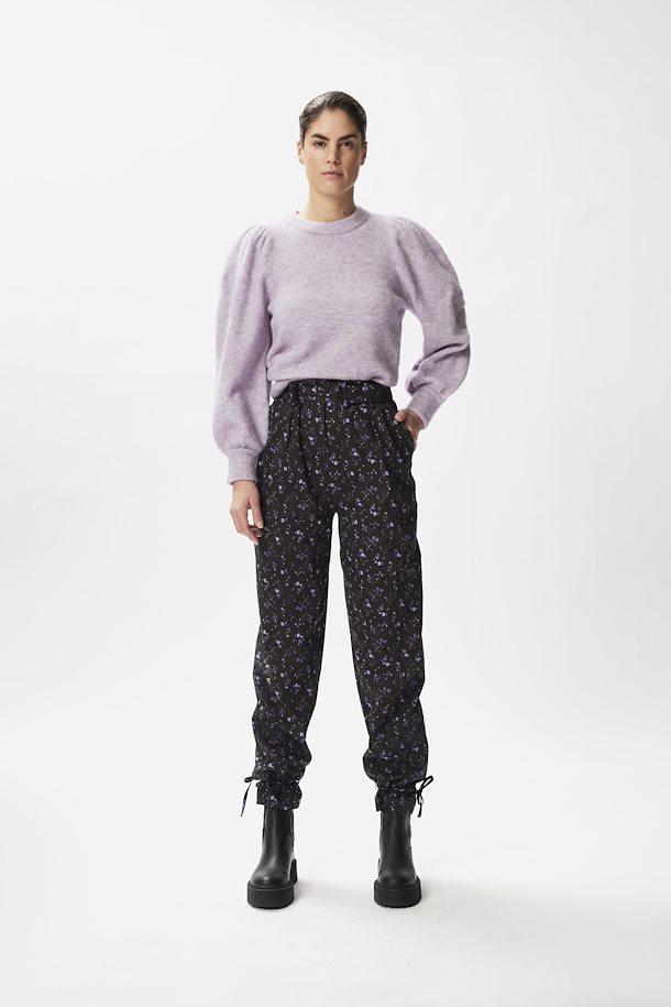 Naisten neule. Gestuz alpakkasekoiteneule syksyn trendiväri violetissa. Klassinen neulemalli piristettynä pussimaisilla hihoilla. Pyöreä pääntie.