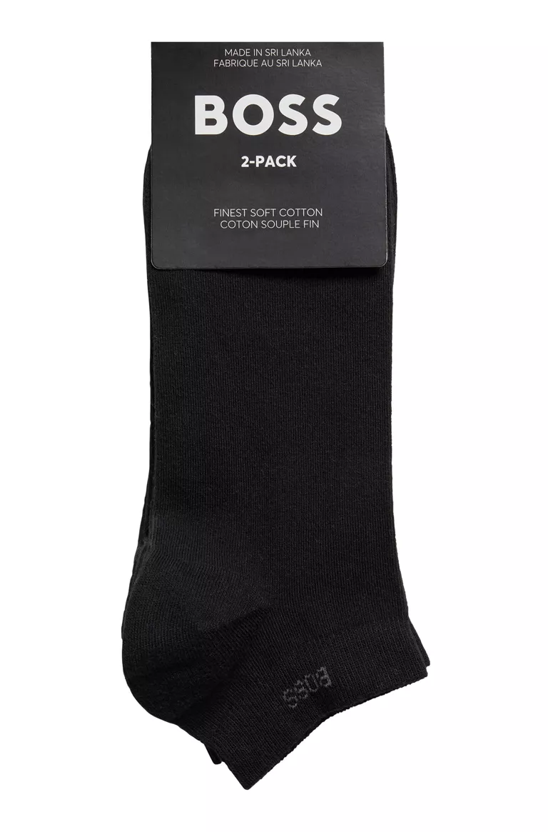 Miesten sukat. Tuplapakkaus mustia Boss sneakersukkia. Lyhyessä varressa Boss logo.