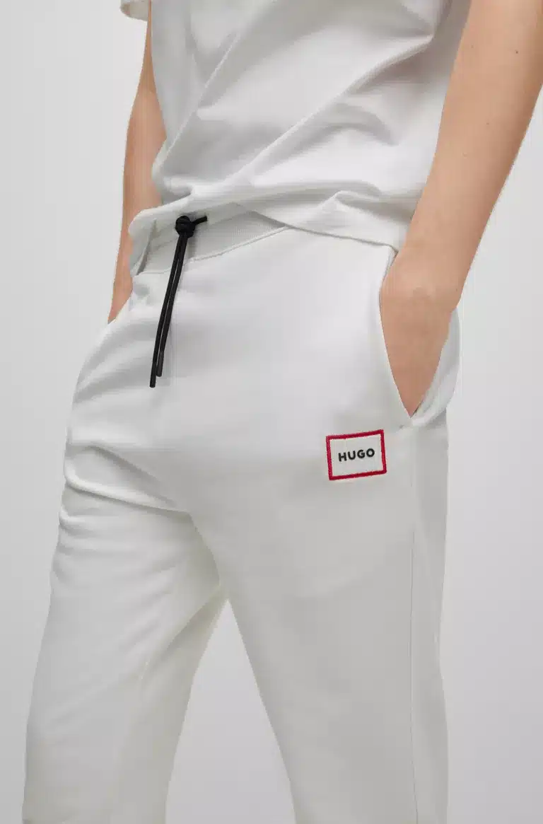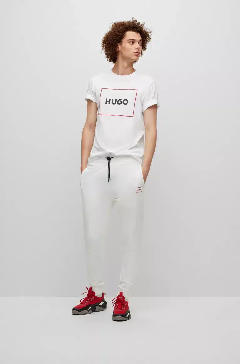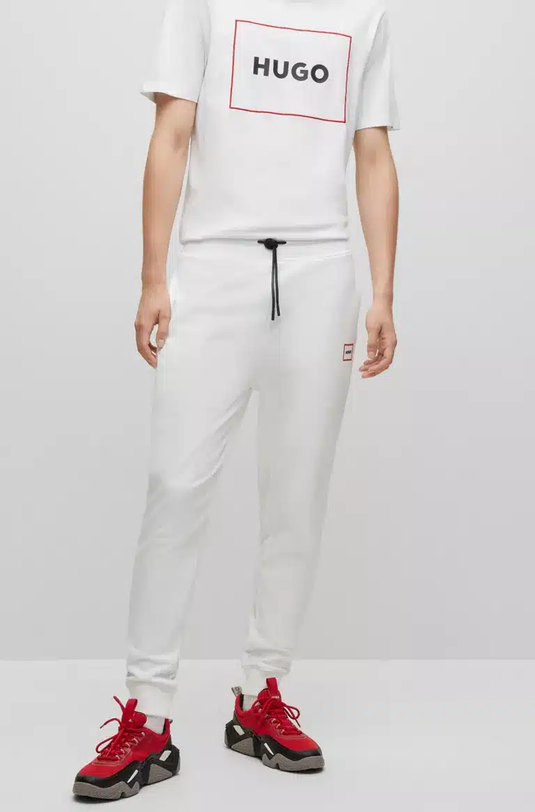 Miesten collegehousut. Valkoiset Hugo- malliston collegehousut 100% Puuvillaa. Lahkeessa punainen Hugo logo.
