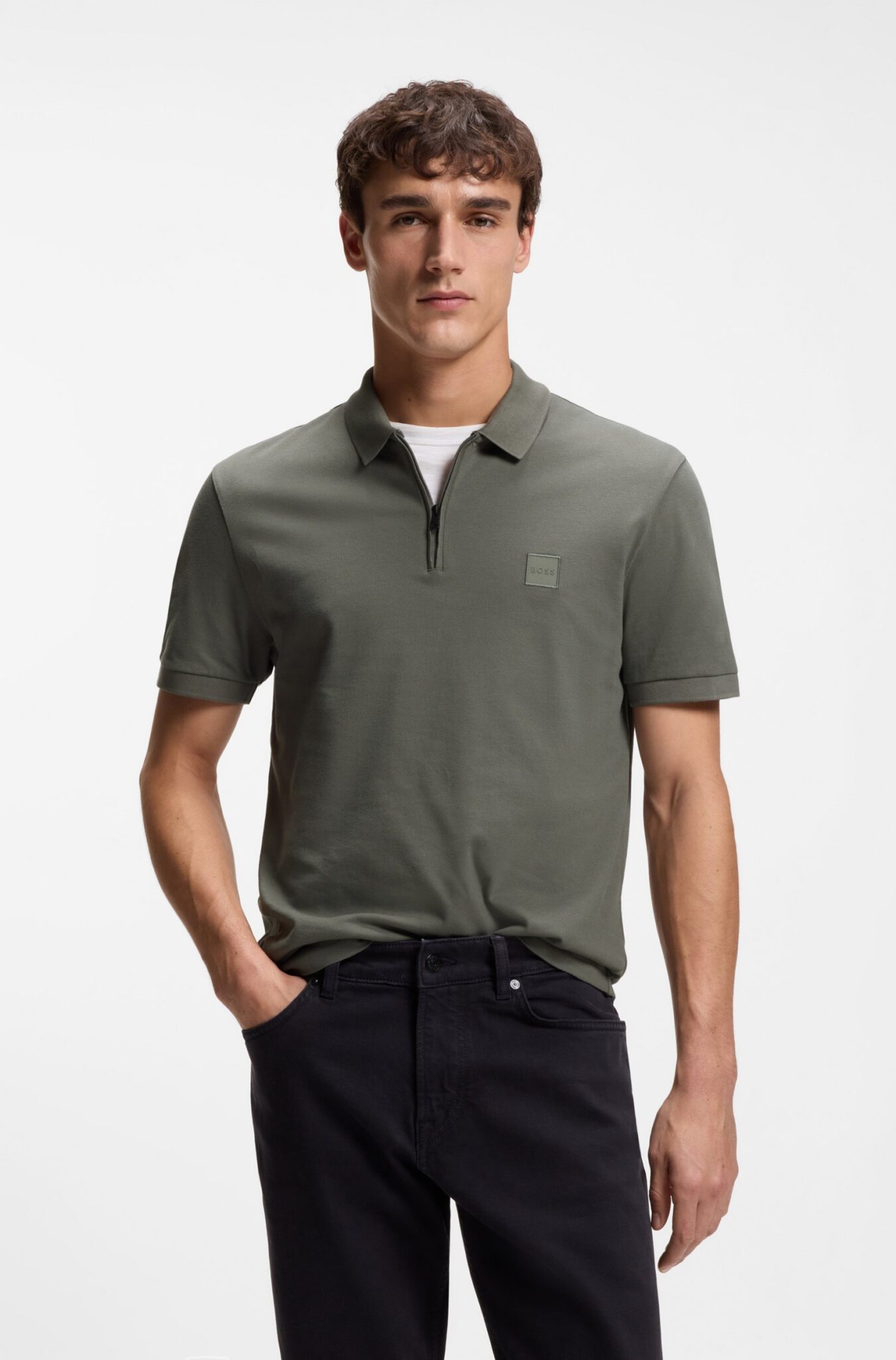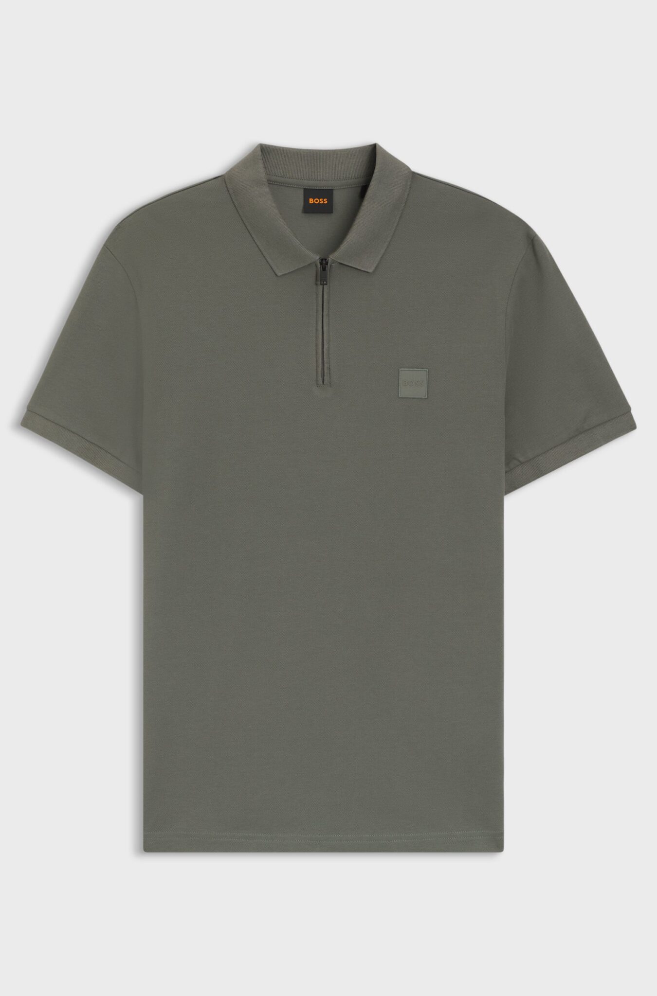 Boss Passerzip Stretch Cotton Slim Fit Polo Shirt Grey
