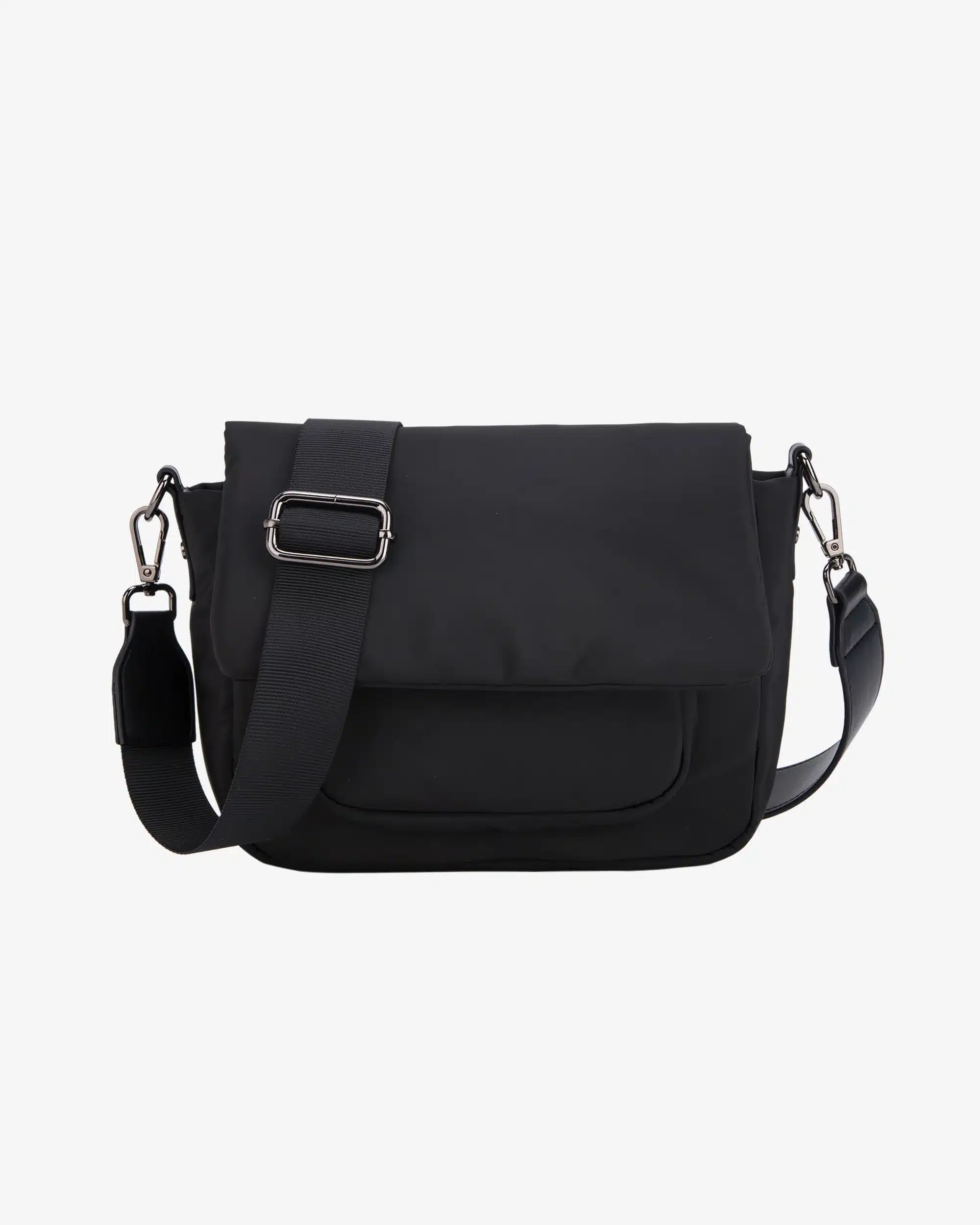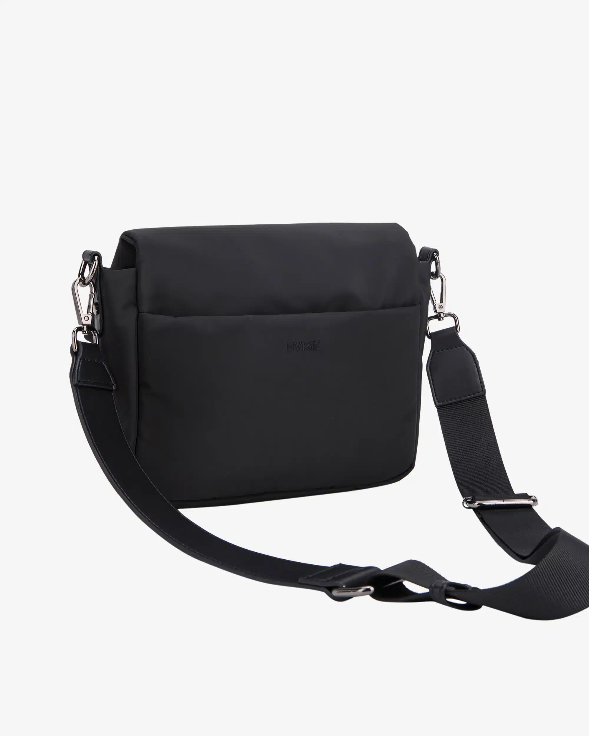 Kierrätysmateriaalista valmistettu trendikäs Hvisk olkalaukku. Laukussa on säädettävä hihna, magneetilla kiinnittyvä läppä, taskuja.