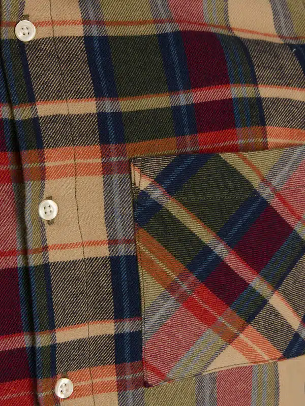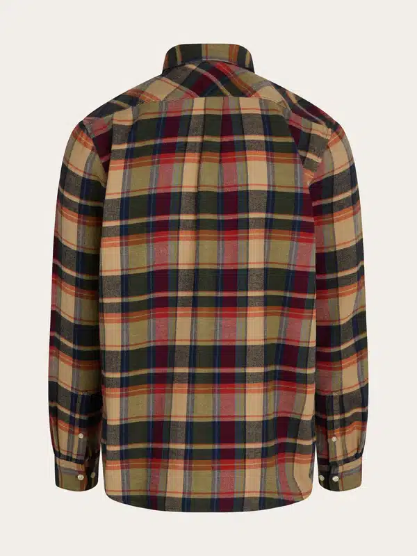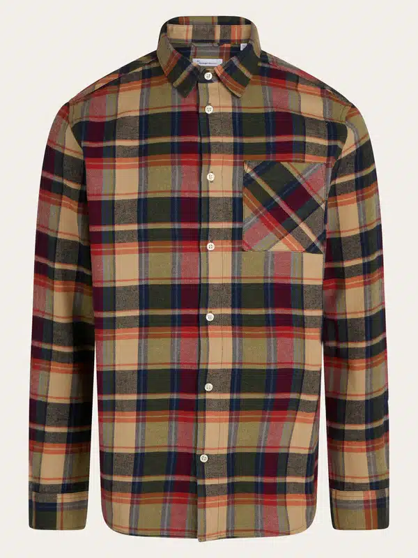 Miesten paita. Pehmeä ruudullinen Knowledge Cotton Apparel flanellipaita luomupuuvillaa. Rintatasku.