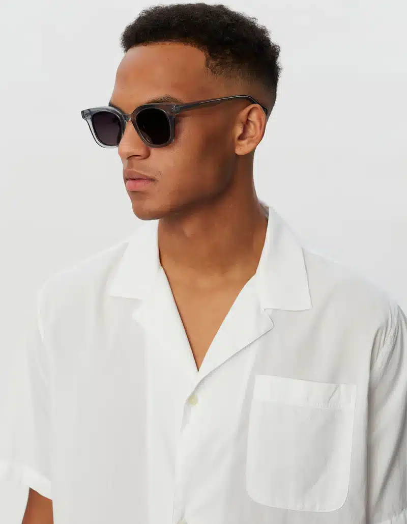 Miesten aurinkolasit. Näyttävät, hypoallergeeniset Les Deux aurinkolasit kirkkailla kehyksillä.