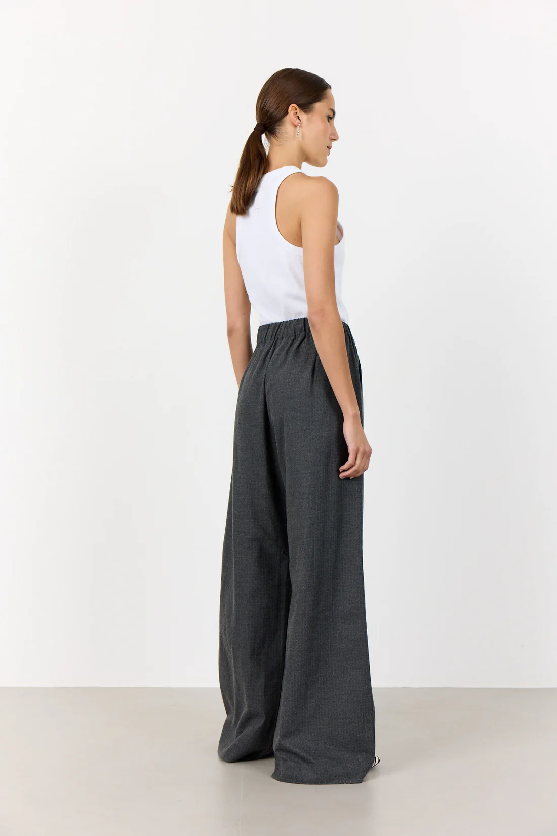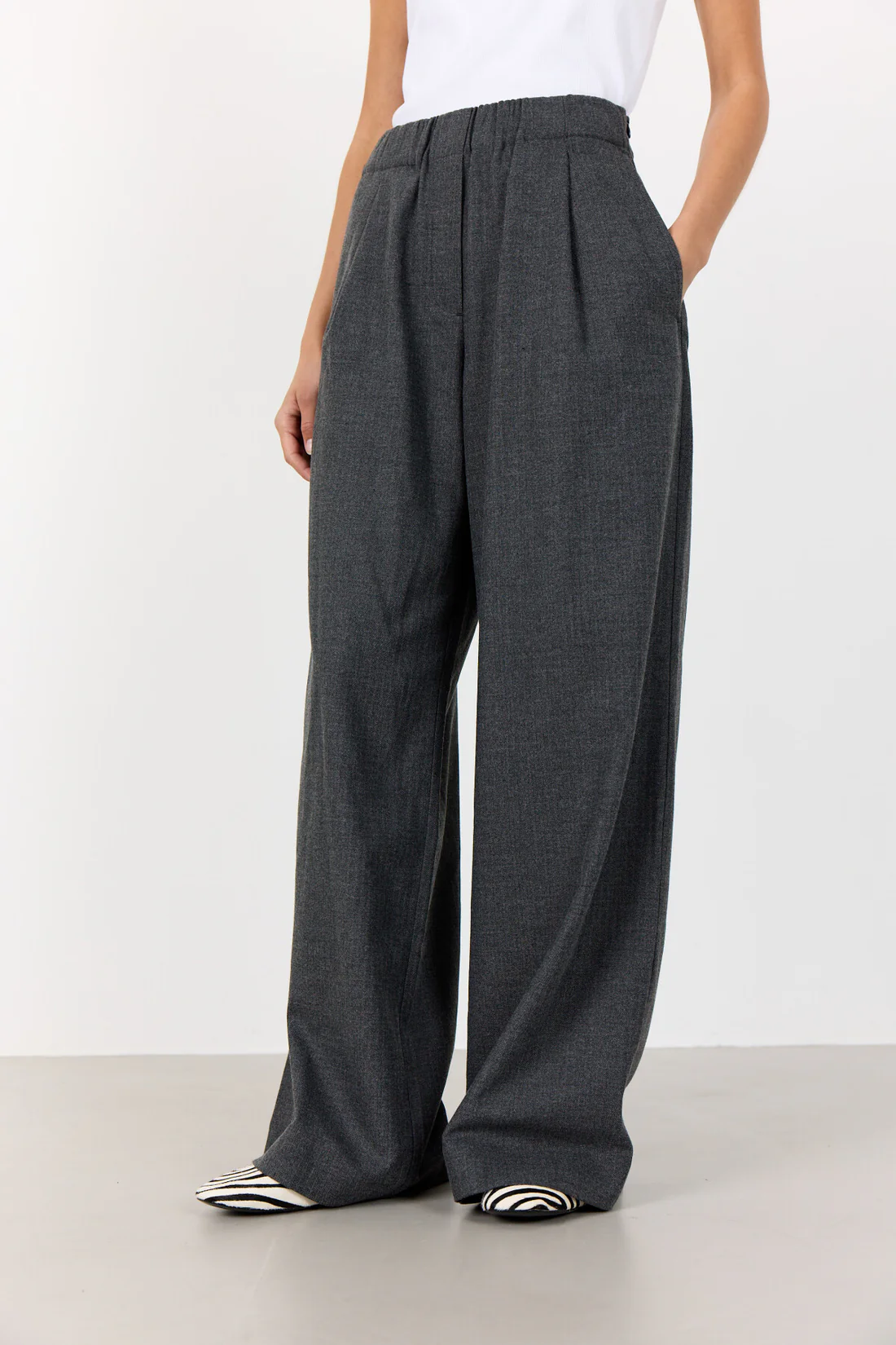 Leveät tummanharmaat Levete Room housut.