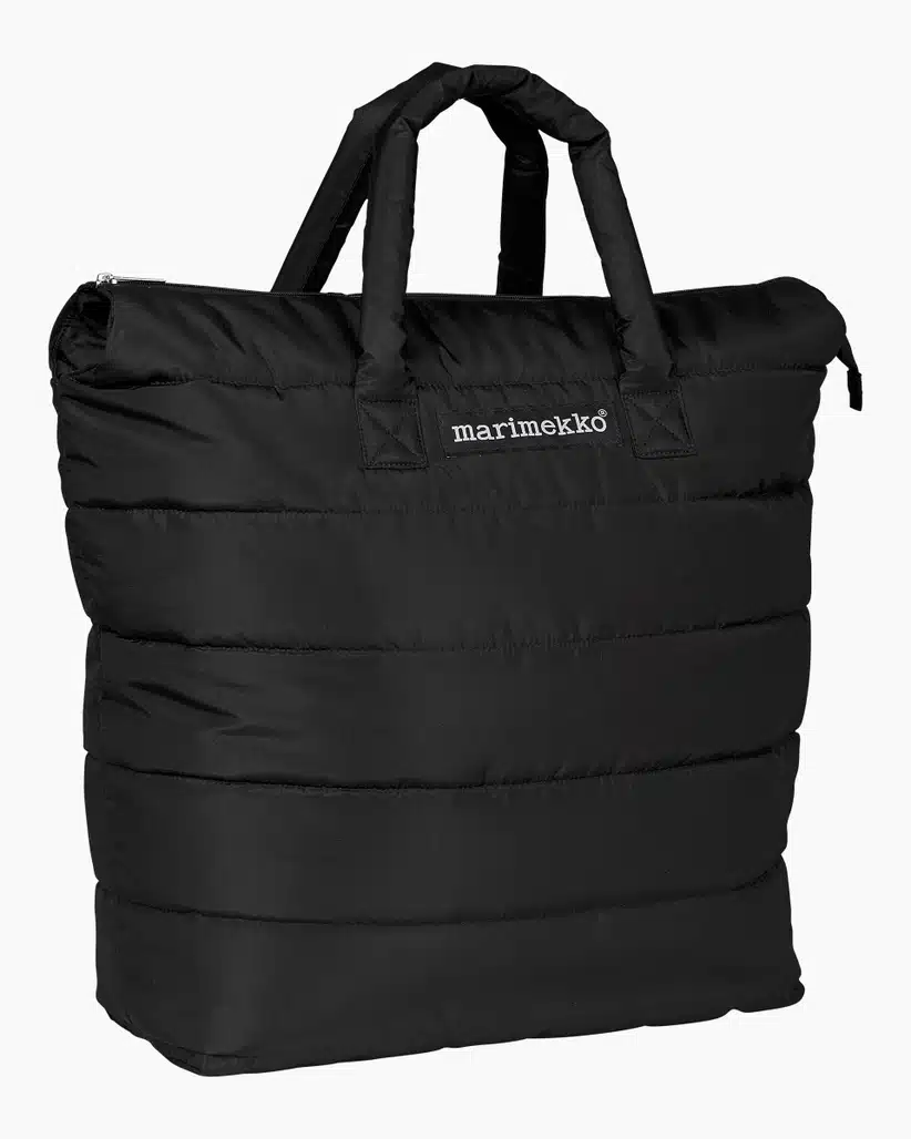 Vastuullisesti kierrätysmateriaalista valmistettu Marimekko tikkilaukku. Pehmustetussa laukussa on vetoketjusuljenta, kantokahvat sekä yksi vetoketjullinen sisätasku.