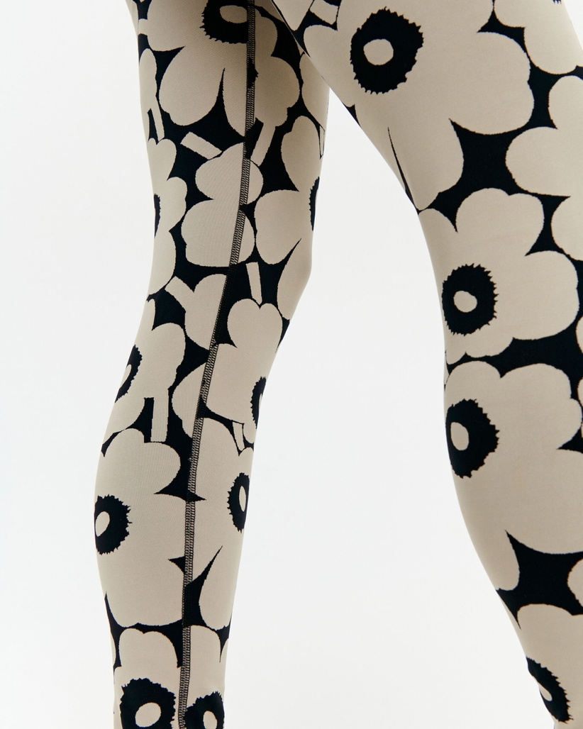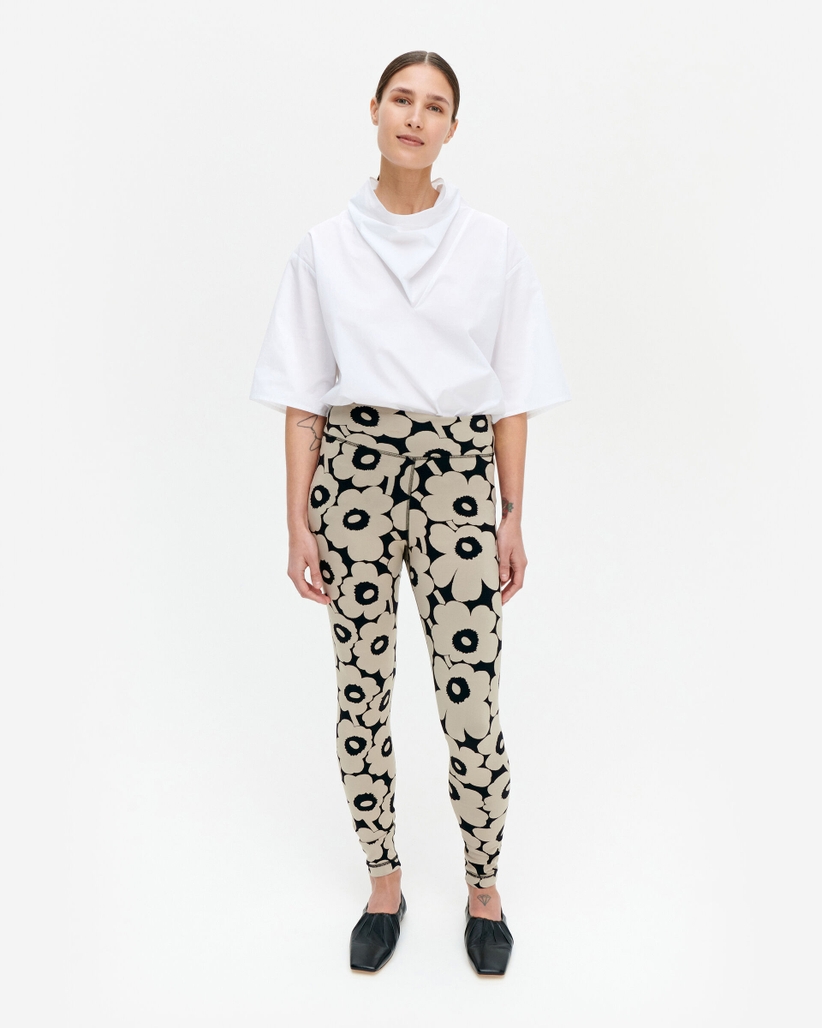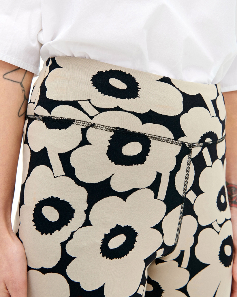 Joustavissa Marimekko Käpälä-leggingseissä on Unikko-kuosi.