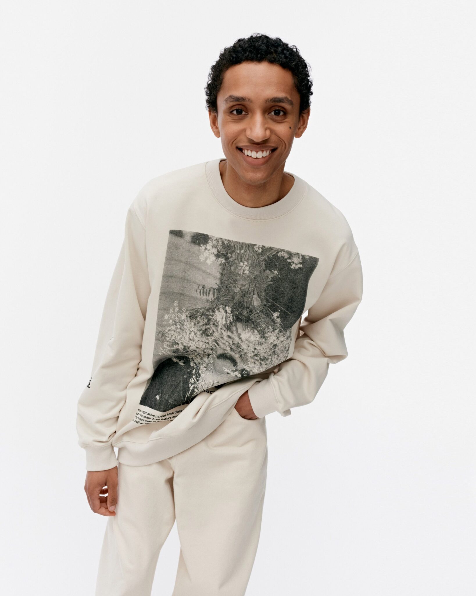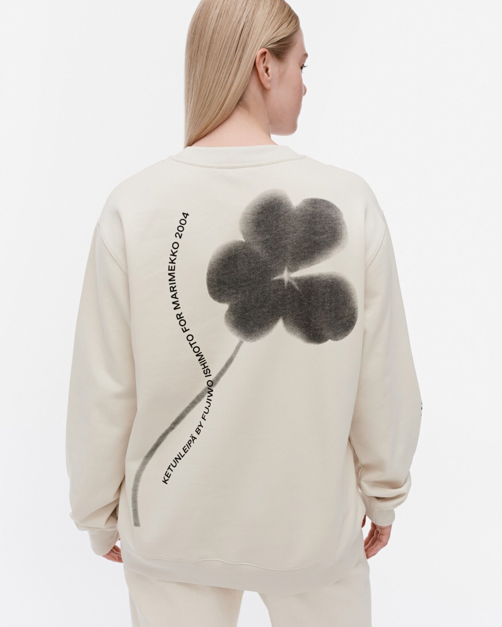 Marimekko Loisto-collegepaita on valmistettu luomupuuvillacollegesta ja siinä on suora leikkaus sekä unisex-mitoitus. Collegepaidassa on kappalepainettu valokuvaprintti edessä ja tekstiprintti oikeassa hihassa. Ketunleipä-printti sekä teksti ”Ketunleipä by Fujiwo Ishimoto for Marimekko 2004” on painettu taakse. Paidassa on pyöreä resoripääntie ja leveät resorit hihansuissa sekä helmassa.