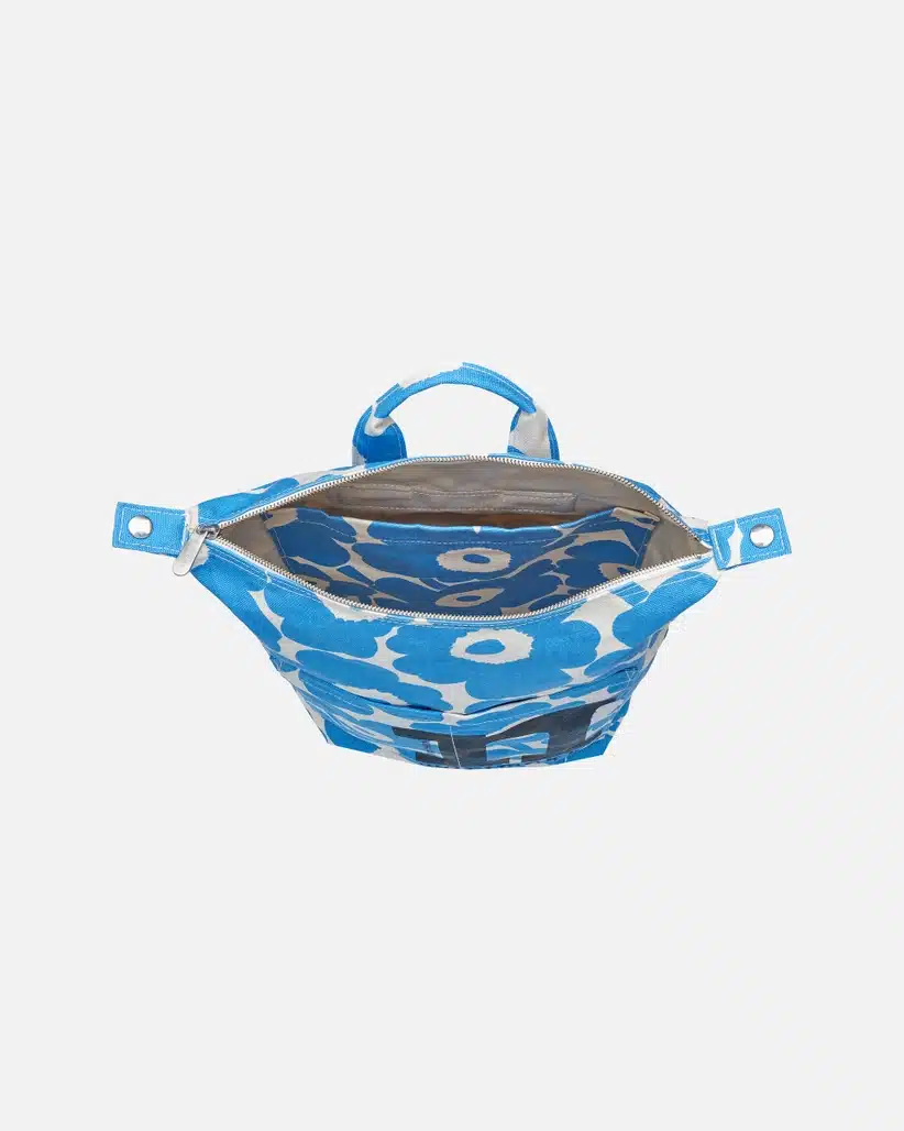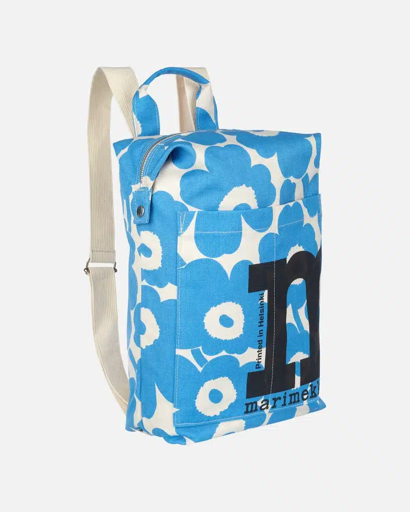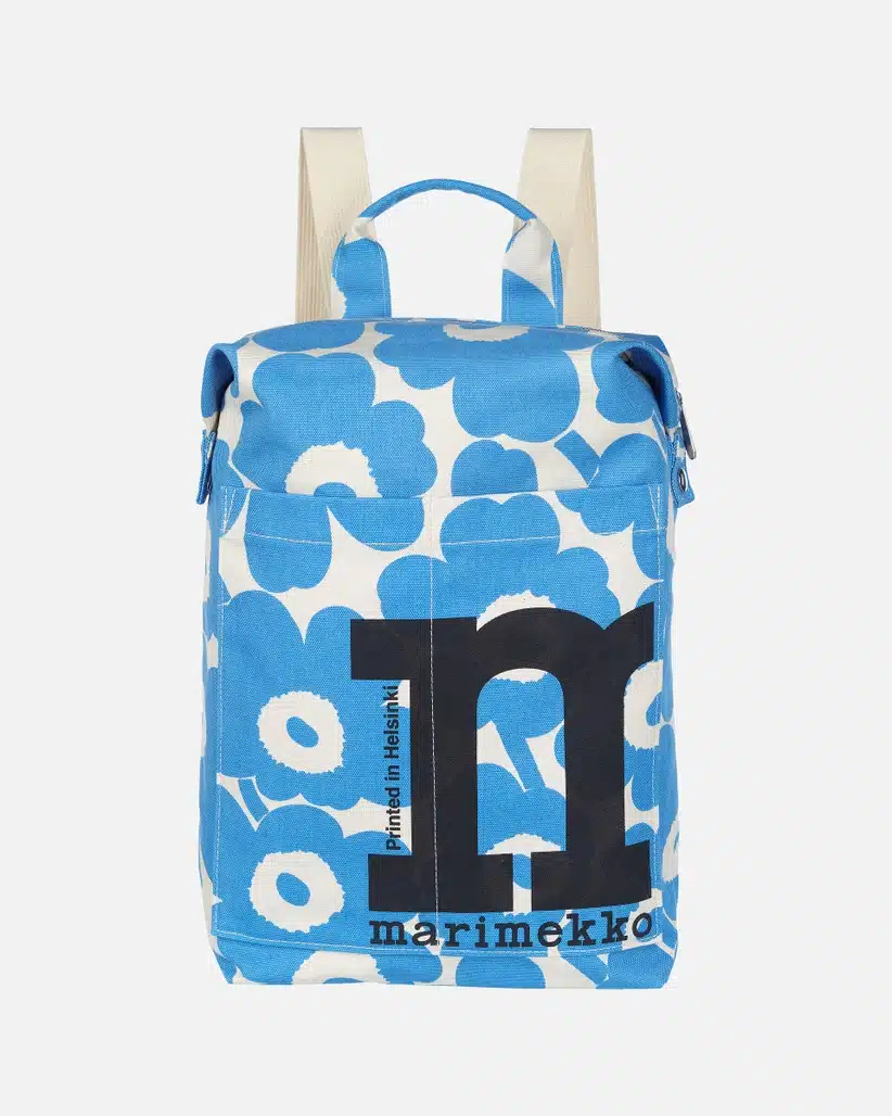 Marimekko reppu. Marimekko Mono Backpack -reppu on valmistettu valkaisemattomasta luomupuuvillasta. Repussa on vetoketjusuljenta, säädettävät olkahihnat ja kaksiosainen avoin ulkotasku etupuolella. Sisäpuolella on yksi iso avoin tasku esimerkiksi kannettavaa tietokonetta varten. Vetoketjun päät saa kiinnitettyä repun sivuihin painonapeilla. Ihana Unikkokuosi!