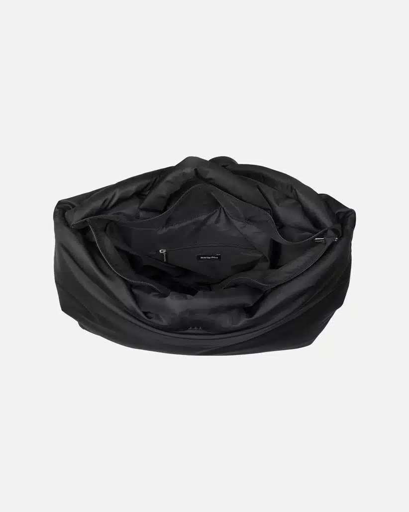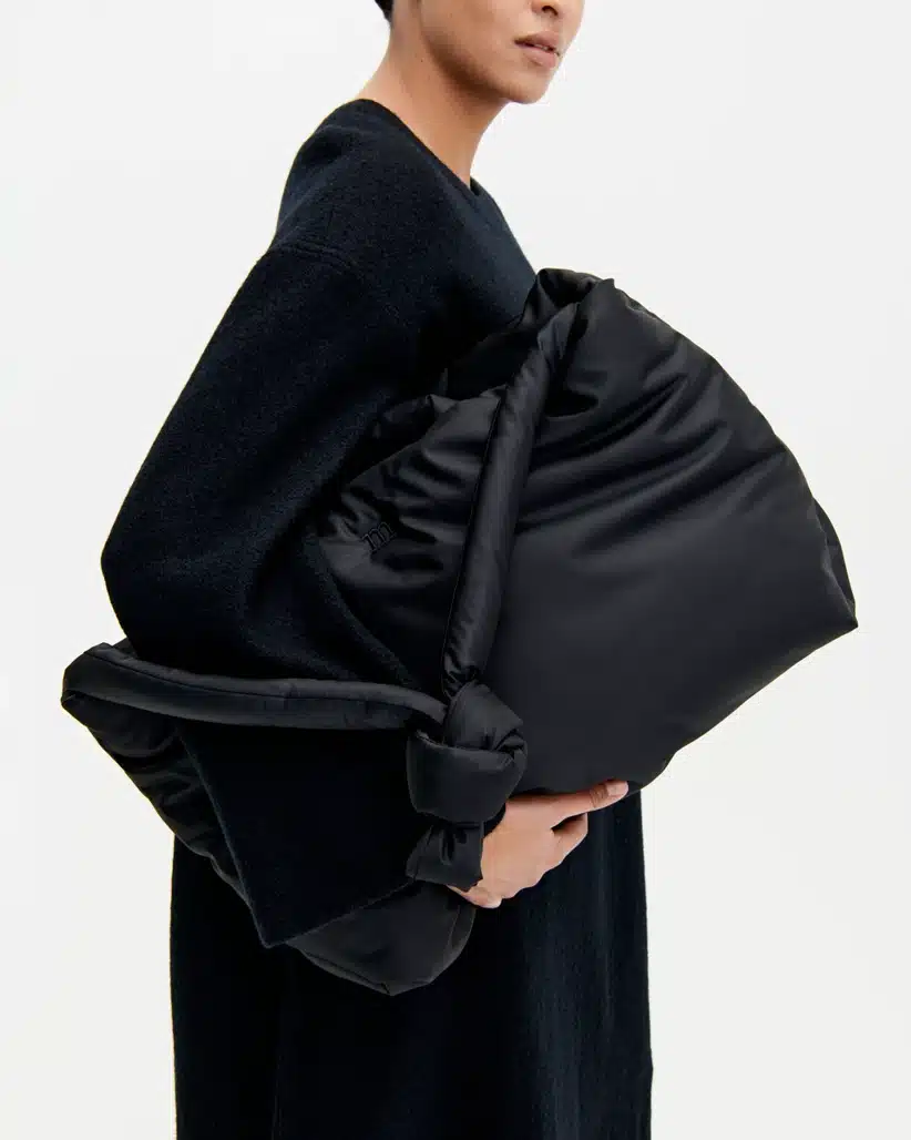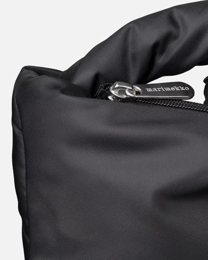 Marimekko laukku. Marimekko Padded Weekender -laukussa on pitkä topattu olkahihna, jonka voi solmia oikeaan pituuteen, sekä topatut kantokahvat. Isossa laukussa on vetoketjusuljenta sekä yksi vetoketjutasku sisäpuolella. Marimekon M-kirjain on brodeerattu etupuolelle.