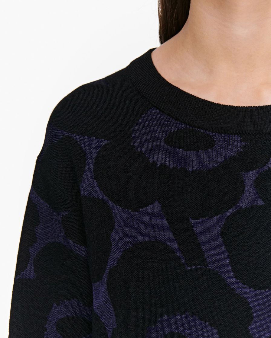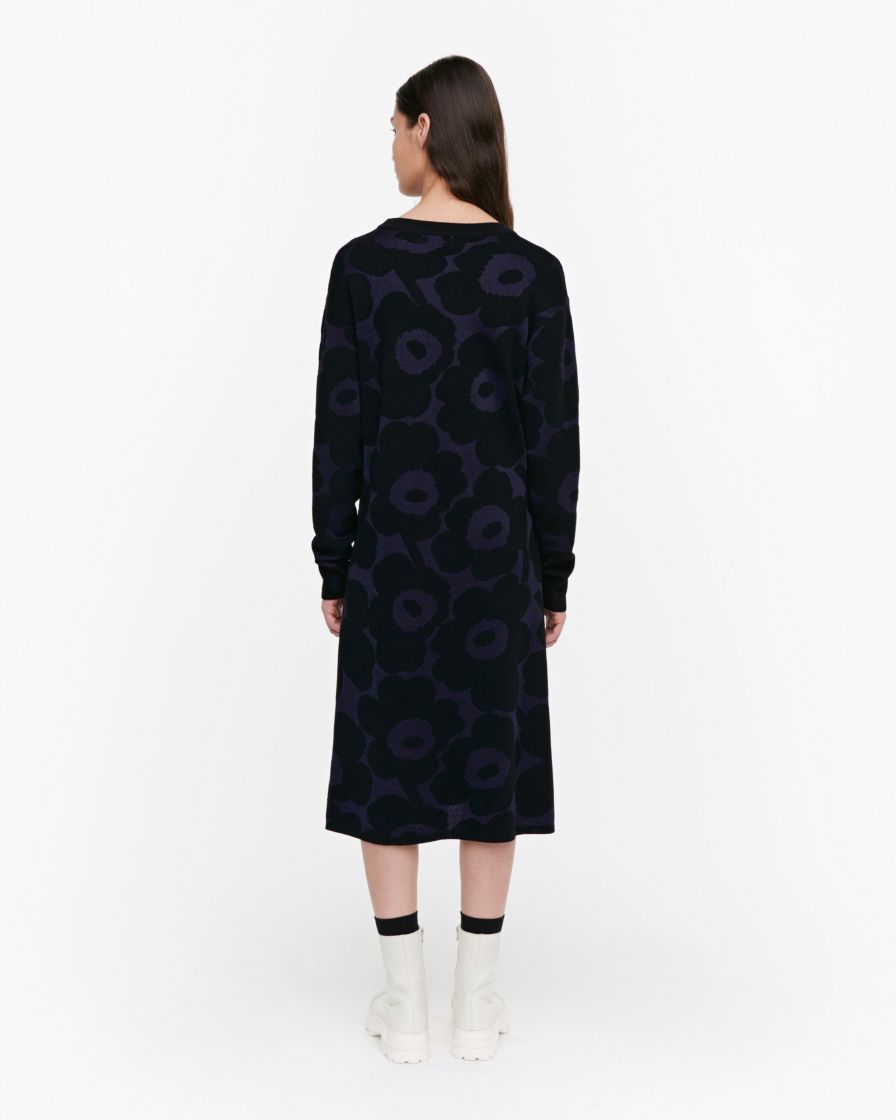 Naisten neulemekko. Marimekko Peurankello-neulemekko on valmistettu Pieni Unikko -kuosisesta merinovillasekoitteesta.