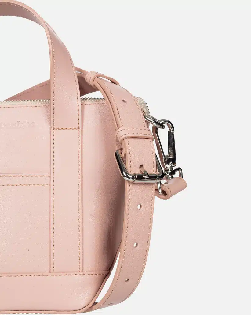 Naisten laukku. Marimekko Pikkuinen Matkuri -olkalaukku on valmistettu pintanahasta, joka patinoituu kauniisti käytössä. Laukussa on säädettävä ja irrotettava olkahihna, kaksi kantokahvaa ja se sulkeutuu vetoketjulla. Ulkopuolella on pieni kahva toisella puolella ja toisella yksi tasku. Sisäpuoli on vuoritettu ja siellä on yksi tasku.
