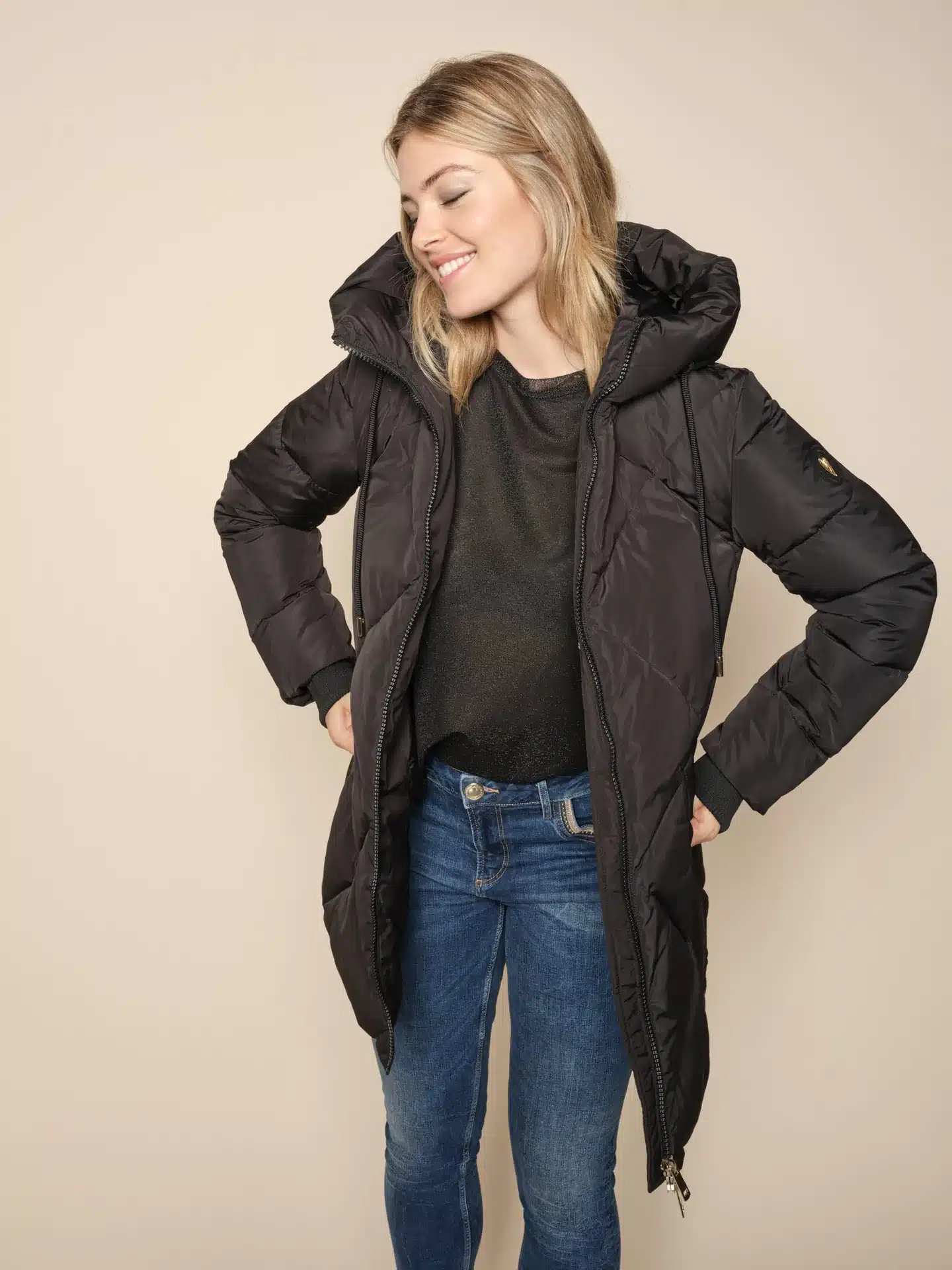Naisten untuvatakki. Musta trendikkäästi ruututikattu Mos Mosh untuvatakki.
