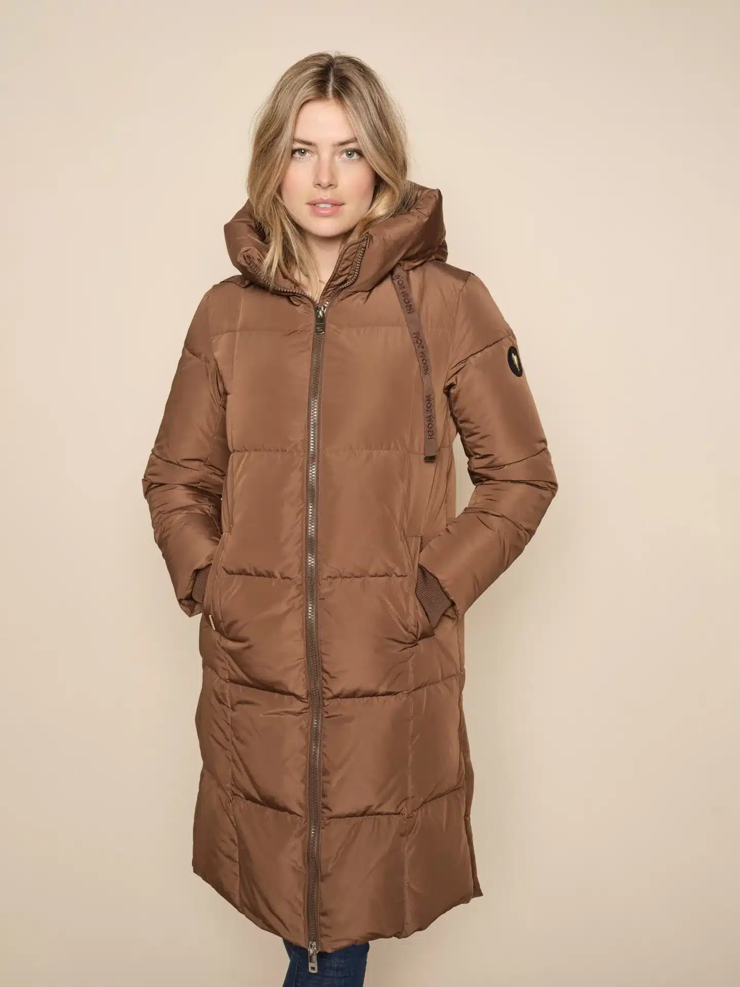 Naisten untuvatakki. Superlämmin trendikkäästi ruututikattu Mos Mosh pitkä untuvatakki.