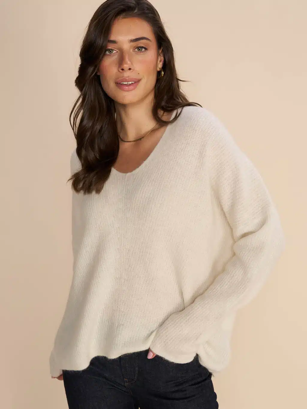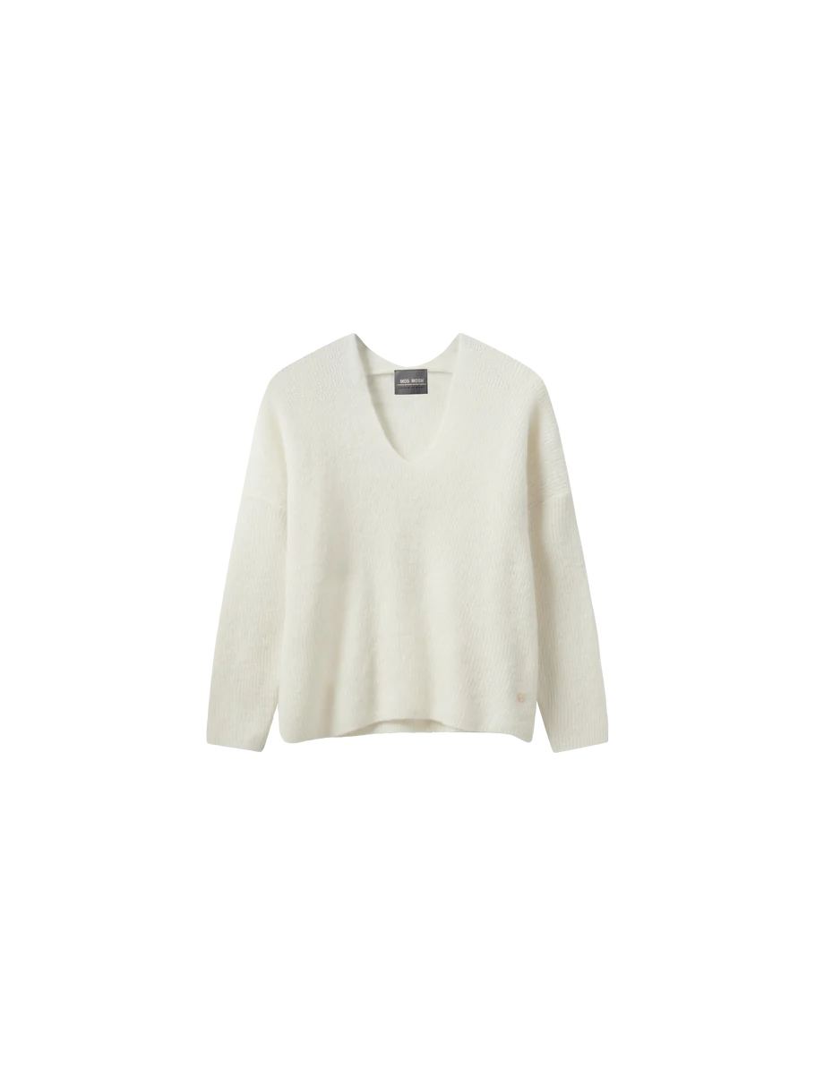Ihastuttava Mos Mosh alpakkasekoiteneule. Neuleessa on rento mitoitus, alaslasketut hihat sekä naisellinen v-pääntie.